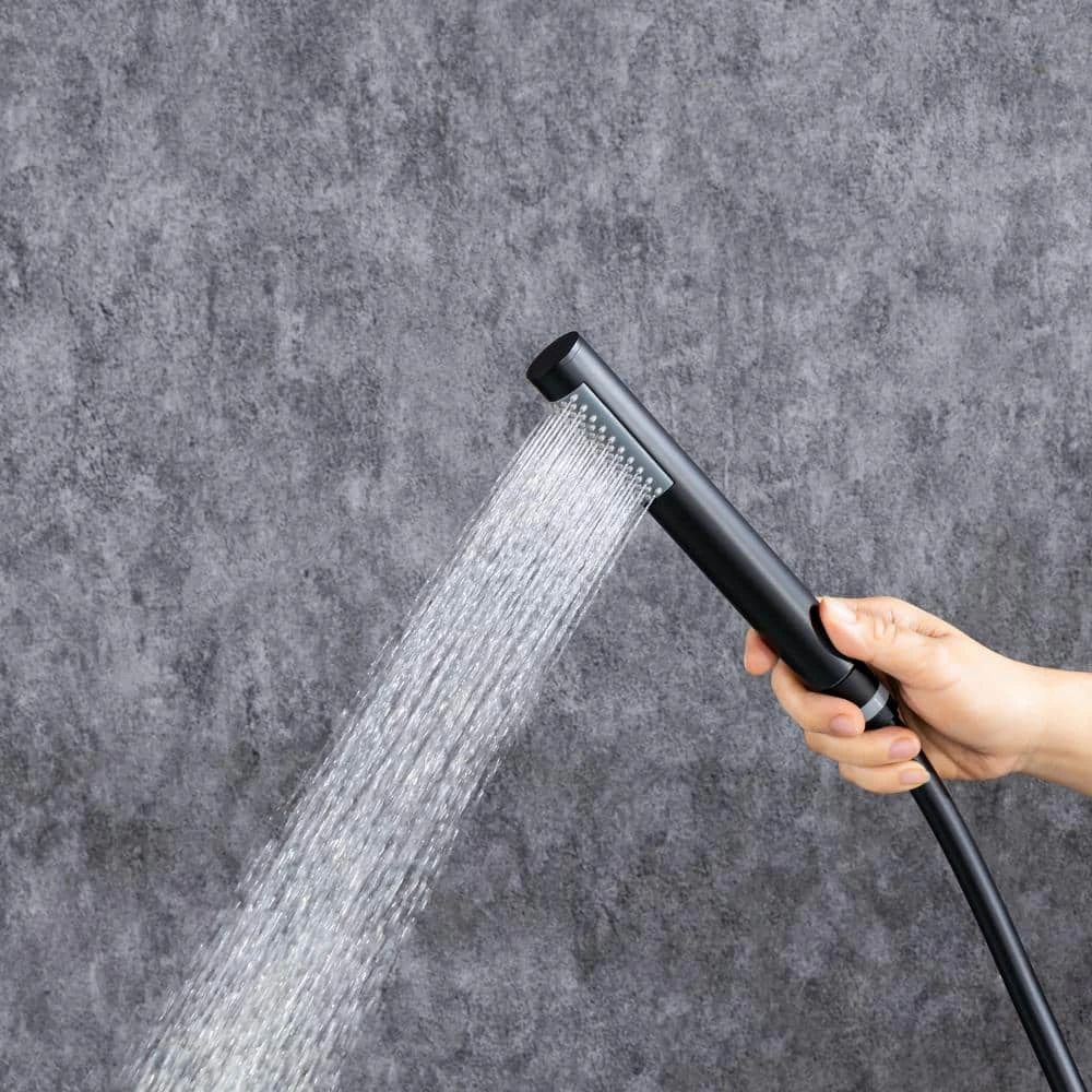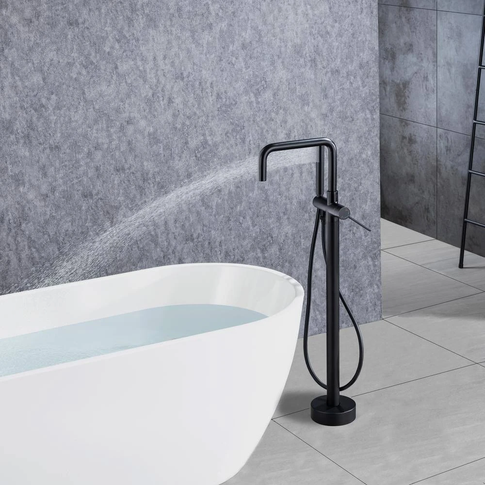 1-Handle Freestanding Tub Faucet With Hand Shower With Waterfall In Matte Black