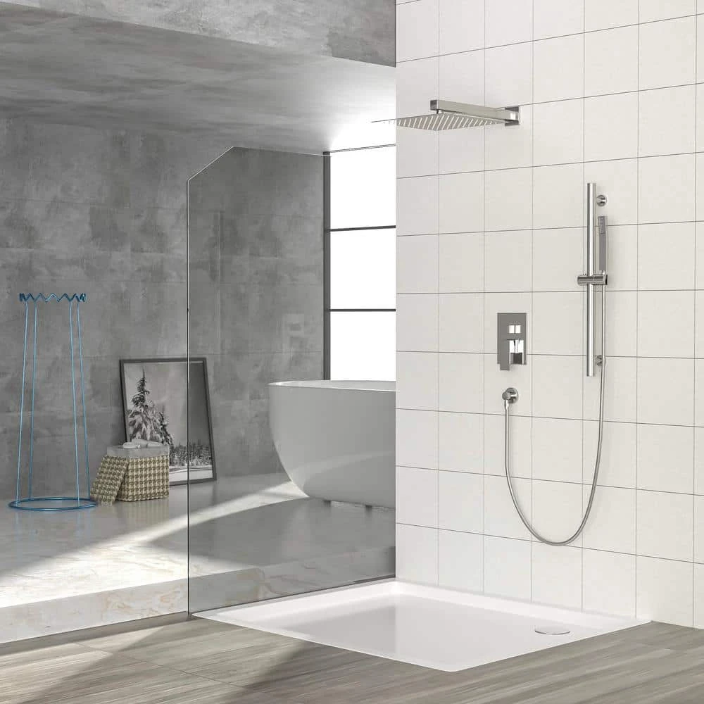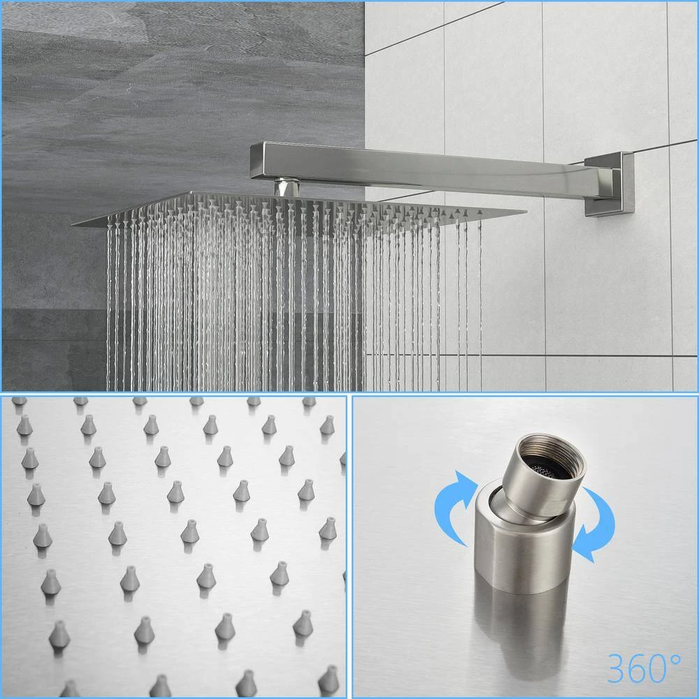 This exceptional shower system boasts a range of advanced features to enhance your bathing experience. Equipped with an Anti-scald Pressure-Balanced Valve, it eliminates disruptive water hammer noises and safeguards against sudden temperature fluctuations, preventing scalding. The ultra-thin Rainfall Shower Head ensures a luxurious, full-body soak with 360° adjustability, offering a soothing downpour shower sensation. Designed for effortless installation, this shower set is wall-mounted and fully pre-piped, making it a breeze to retrofit existing setups. Its G1/2 in. – 14 NPT inlet single hole US standard thread seamlessly integrates with American plumbing systems. Moreover, maintaining this shower’s pristine condition is a breeze thanks to the silicone nozzle in the rain shower head and handheld spray, which effortlessly wipes away mineral deposits with a simple finger swipe. Experience versatility at its finest with the Dual Function Shower, seamlessly transitioning between the refreshing rainfall shower and the handheld shower, accommodating your every need. The comprehensive package includes a 12- in. Square Rain Shower Head, Shower Arm, Handheld Shower Head, 26.18- in. Adjustable Slide Bar, a 59 in. shower hose, shower holder, water control valve, plus all necessary parts and installation instructions, ensuring a hassle-free setup and long-lasting enjoyment.