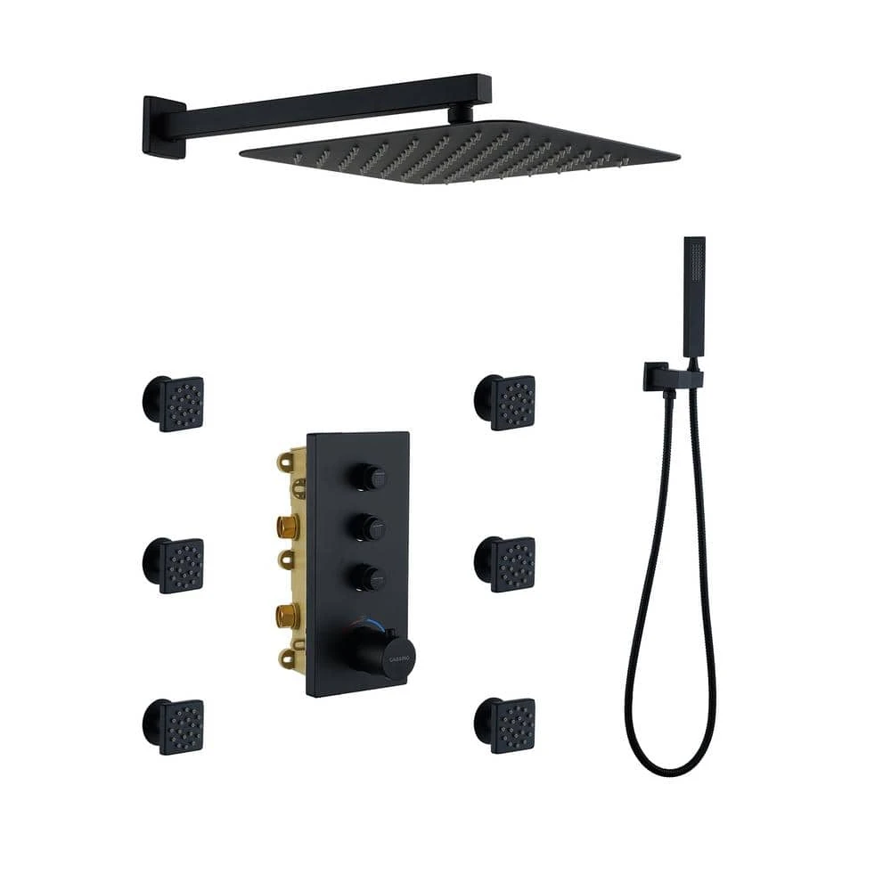 1-Spray 1.8 GPM High Pressure Ceiling Mount Dual Shower Head/Handheld Shower Combo In Matte Black
