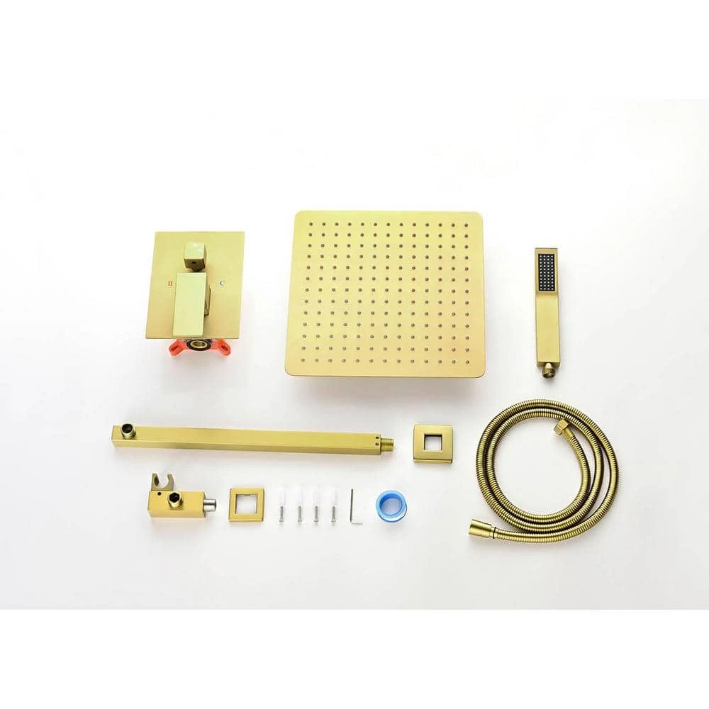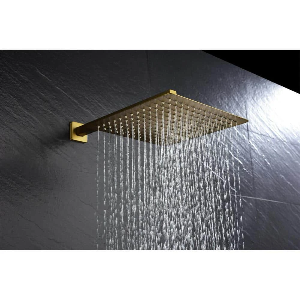 This wall-mounted rain shower system features innovative air injection technology for increased water pressure, providing a natural rain-like experience. Constructed with durable brass and high-quality stainless steel, it ensures long-lasting reliability. Complete with a self-cleaning silicone nozzle and American standard pipe connections, installation is hassle-free, offering a sleek addition to any bathroom with its clean lines and powerful shower massage functionality.