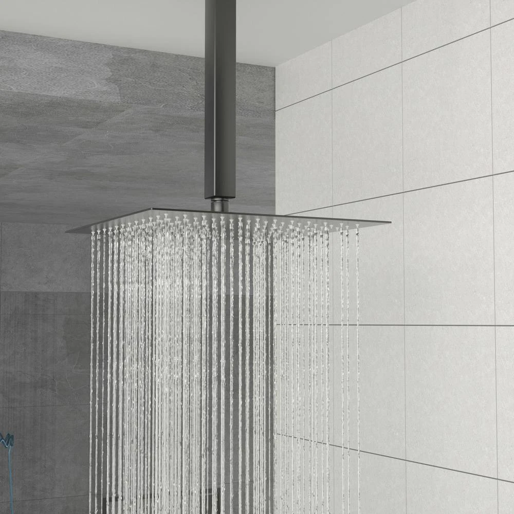 - Widespread rainfall shower experience: the ultra-thin, 16 in. sq. overhead rainfall shower head delivers a soothing downpour with 360° adjustability, covering a large area for an immersive showering experience