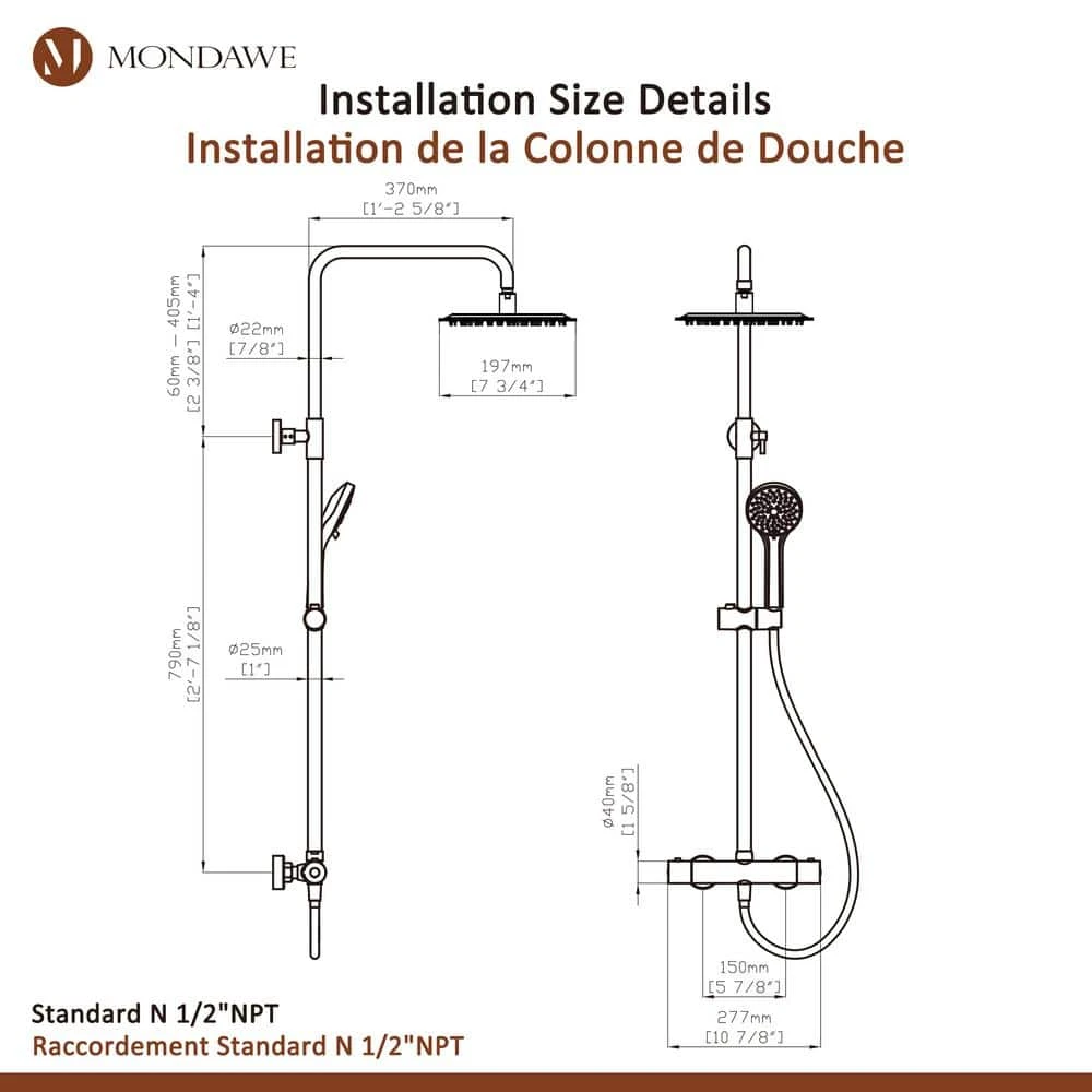- Shower faucet has universal thread specifications: standard American NPT 1/2 in. thread, compatible with most shower systems, quick and easy installation