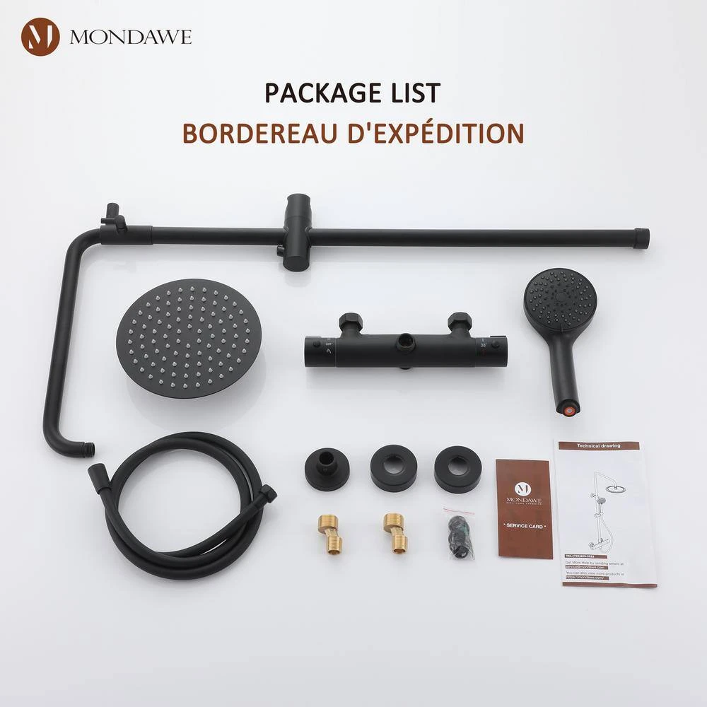 - System includes 8 in. stainless steel shower head, 3-function hand shower,1500 mm shower hose