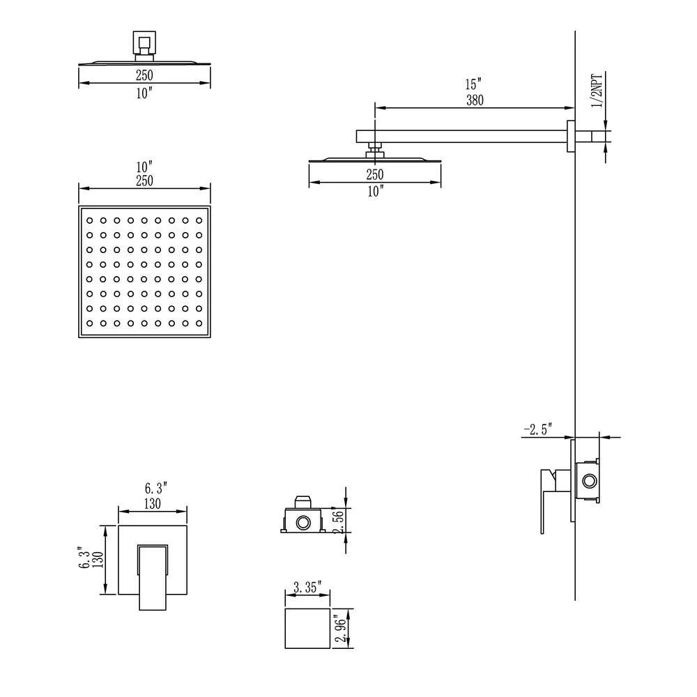 1 Spray 10 in. Square shower head with modern and unique design. The attached square handle is convenient and quick to adjust the water temperature. The elegant brushed nickel finish and the setting of 1.5 GPM flow form a perfect shower system.