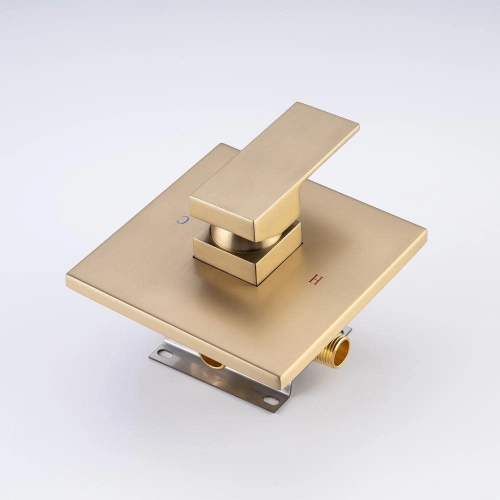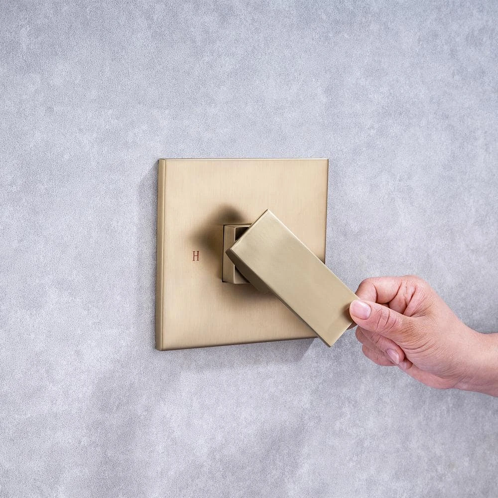 1-Spray Patterns With 2.5 GPM 10 In. Wall Mount Rain Fixed Shower Head In Brushed Gold (Valve Included)