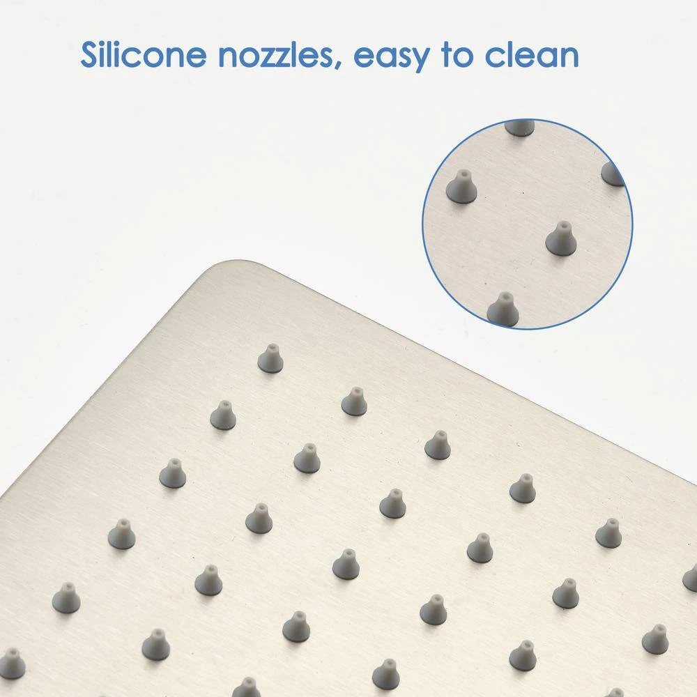 Discover the perfect combination of innovation and luxury with our premium showerhead. Designed with a self-cleaning, flexible silicone nozzle, it effectively prevents scale buildup, offering a maintenance-free solution for effortless use. Crafted from 304 stainless steel, it guarantees durability, resisting rust for a long-lasting, reliable performance. The ultra-thin design, enhanced by air-in technology, delivers a perfect shower experience even in low-pressure environments. Installation is a breeze, taking only minutes to set up on either wall-mounted or ceiling shower arms. Thanks to the rotating spherical joint, you can enjoy unprecedented flexibility and control, tailoring your shower exactly to your preference. The expansive 12 in. high-pressure showerhead brings a spa-like experience to your home, providing powerful and refreshing showers day after day.