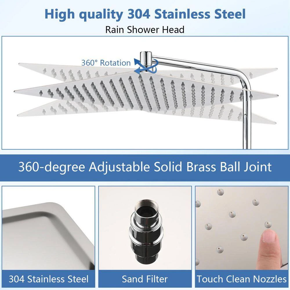 Our product is a 12 in. Stainless Steel Rainfall Showerhead that combines functionality and style. It provides waterfall full – body coverage, crafted from stainless steel. This construction not only makes it corrosion – resistant but also highly durable. With its luxurious shower design, it doubles as a beautiful decoration for your bathroom. The 12 in. shower head features 144 closely – connected silicone nozzles, delivering a hotel – style shower experience. These nozzles are self – cleaning, preventing clogging. The ultra – thin design, integrated with air – in technology, ensures a perfect shower even in low – pressure areas. The adjustable extension arm, made of strong and durable material, eliminates concerns about breakage or leakage. It allows you to easily adjust the shower head to the optimal angle and height. Installation is a breeze-you can set it up in seconds without any tools. Simply screw it onto standard 1/2 in. pipe threads to start enjoying the new waterfall shower. The silicone nozzles prevent scaling, promising maintainable enjoyment. Moreover, the shower head’s angle is adjustable, enabling you to bring a touch of luxury spa to your home. In terms of specifications, it’s 12 in. wide, an adjustable shower head for wall – mounting. With a maximum flow rate of 2 GPM, it’s square – shaped. Although it doesn’t offer adjustable water flow or spray patterns, and no hand shower is included, it does come with a shower arm.