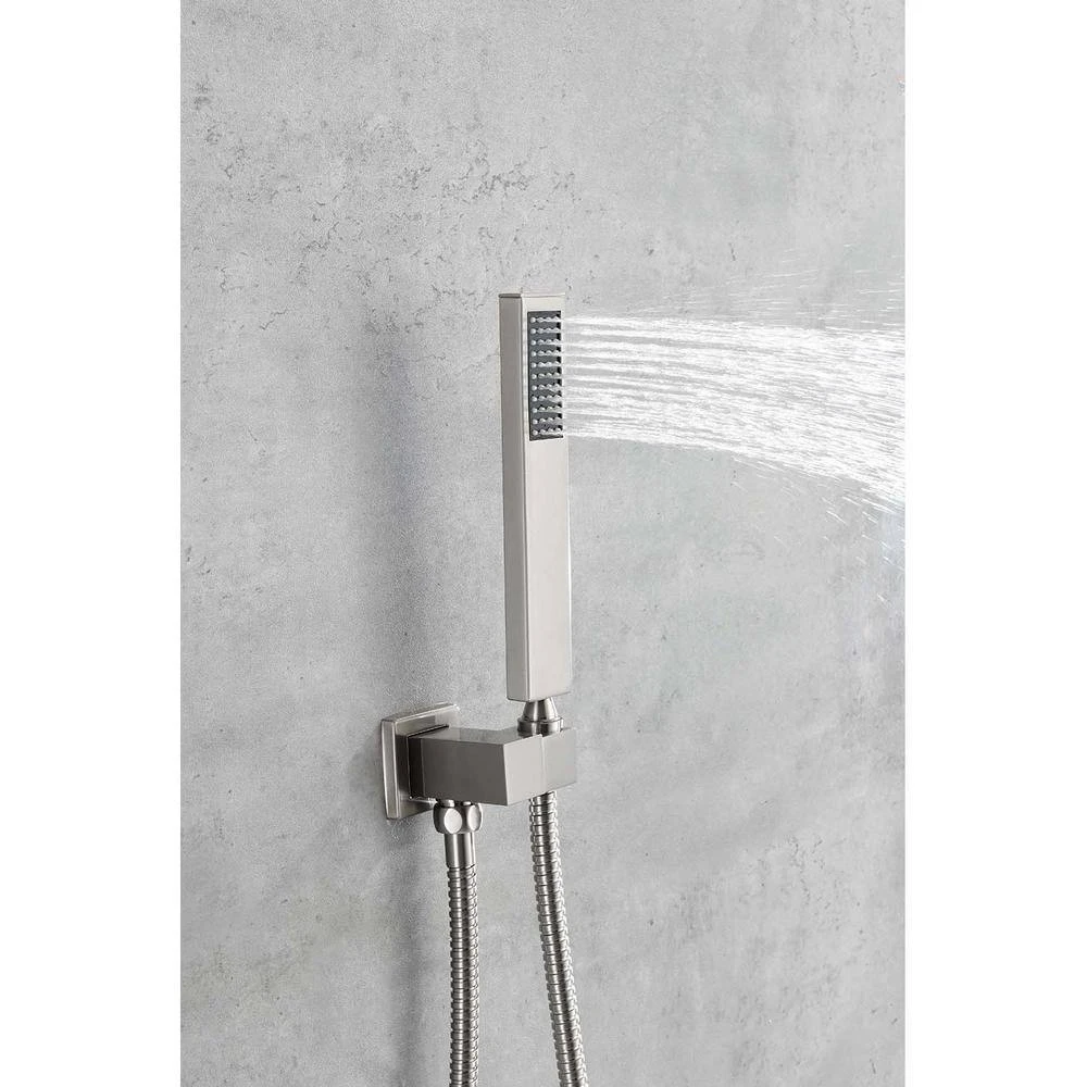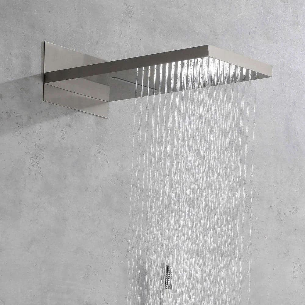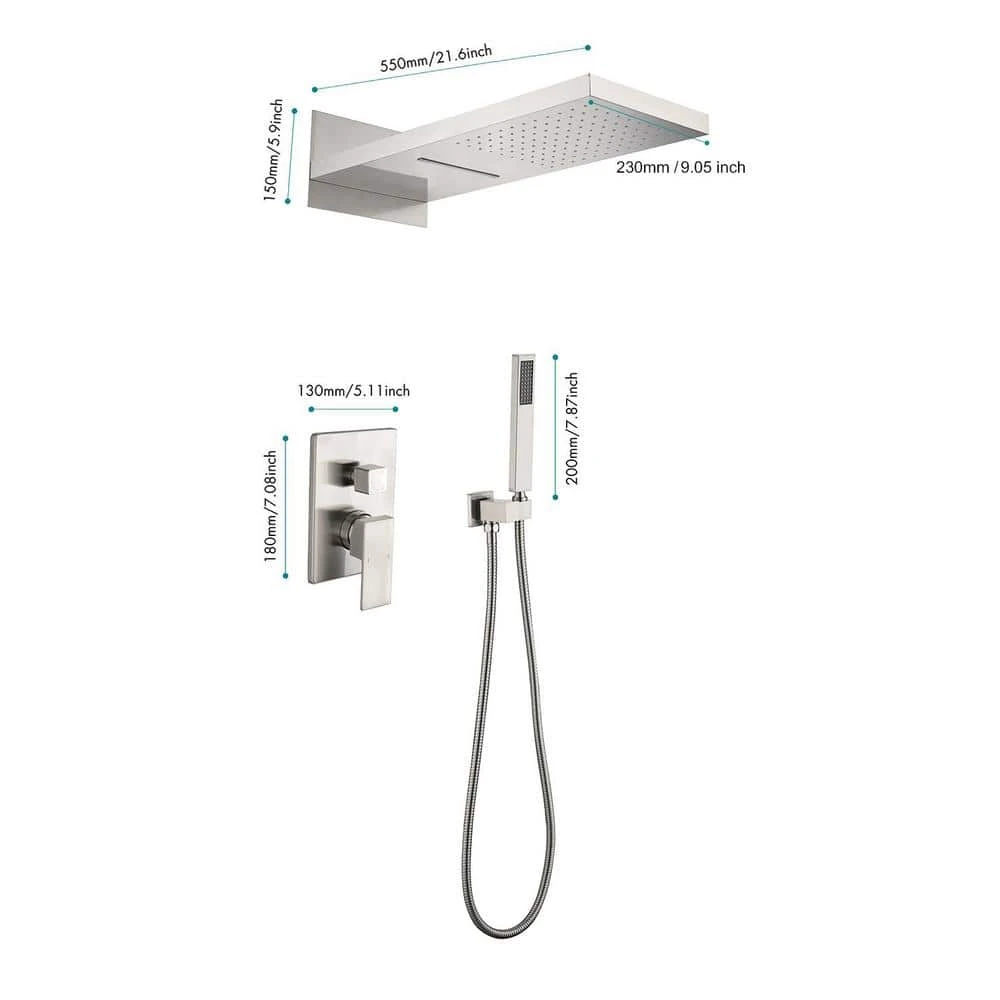This dual-function waterfall rain shower head offers both rain and waterfall modes, providing a full-body relaxation experience akin to natural rainfall and the gentle flow of a waterfall. Constructed from brass and high-quality stainless steel SUS304, it guarantees durability. With an NPT 1/2 in. connector design conforming to American standard pipe connections, installation is straightforward. The wall-mounted system includes a shower head, hand shower head, 59 in. shower hose, shower bracket, water control valve and mounting hardware, ensuring a comprehensive shower solution. Additionally, the handheld shower head allows for targeted cleansing, catering to diverse bathing needs and enhancing the overall shower experience.