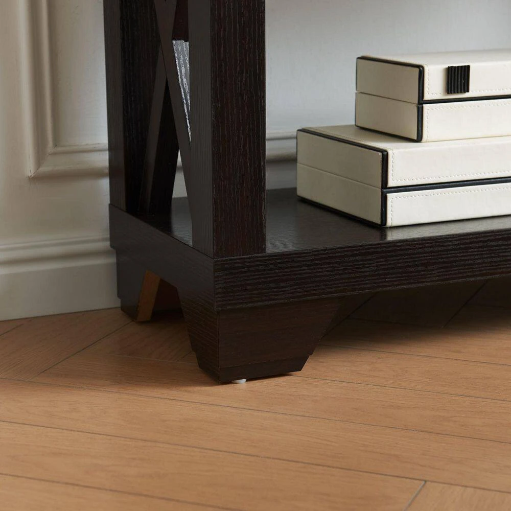 The four-layer heightened compartment design can easily store oversized collections and books. The selected thickened solid wood partitions are matched with X-shaped reinforced side frames to enhance the structural stability and add a retro industrial aesthetic. The rugged wooden legs and overall frame design bring a high-end and stable display solution to your space.