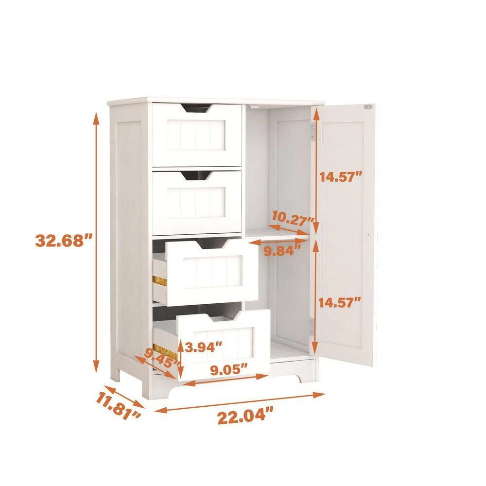 The bathroom storage cabinet boasts a simple and stylish modern white design, suiting any home decor. Crafted from high-quality E1 MDF board, superior to CAPB P2, it ensures solidity and durability, resistant to damp and deformation over time. With its upgraded UV-painted finish, it’s more scratch-resistant than ordinary NC paint, enhanced by three painting processes for a flawless appearance. Featuring four deep drawers and a cupboard, it efficiently organizes towels, toiletries, and other essentials, functioning equally well as a bathroom floor cabinet, storage cabinet, or sideboard to keep your space tidy. Clear and detailed assembly instructions make it easy to set up.
