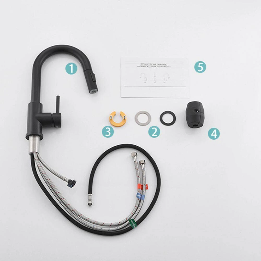 Our faucet offers a comprehensive set of Product Features. It’s a Pull Out Kitchen Sink Faucet, available in an elegant black finish, which doubles as a single – handle kitchen faucet and a bar kitchen faucet. Additionally, you can choose from the brushed nickel version equipped with a pull – down sprayer, making it suitable even for bathroom sinks.Highlighting functionality, it features a 360° Swivel Kitchen Faucet. This black faucet can rotate 360° and comes with a pull – out spray, ensuring a full – range of washing for various sinks, including bar sinks, kitchen prep sinks, bathroom sinks, and regular kitchen sinks.The Pull Out Spray functionality is equally impressive. The pull – down bar faucet has a counterweight that locks it firmly in place. After each use, the sprayer head automatically retracts. Moreover, the 24 in. (60 cm) flexible hoses are pre – installed on the prep sink faucet, providing both convenience and safety.