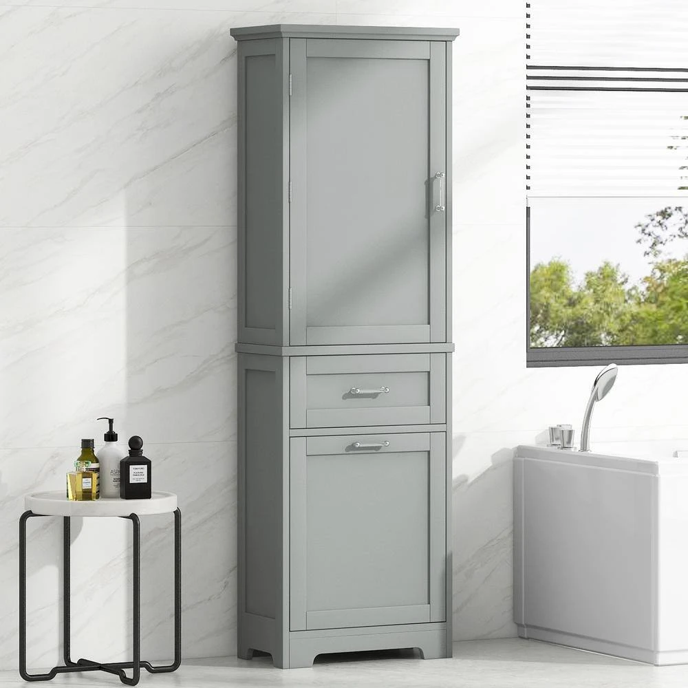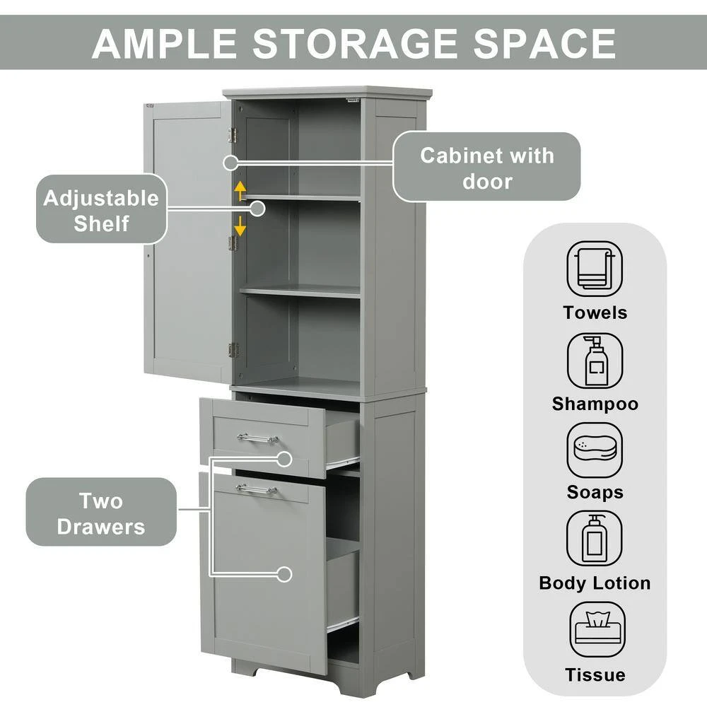 The storage cabinet is crafted from high-quality MDF boards with a painted, water-proof, smooth surface that is easy to clean. It boasts adjustable shelves that can be set at three different heights to accommodate various-sized items, fulfilling daily storage needs for items like shampoo, towels, and body lotion. With 2 differently sized drawers equipped with slide rails and one enclosed cabinet, the cabinet offers ample storage options to keep the room tidy. Additionally, it includes an anti-toppling device for wall attachment to prevent accidental tipping and ensure safety. The cabinet requires assembly, but it’s straightforward with pre-drilled holes, and the included instruction manual and hardware pack facilitate easy installation.