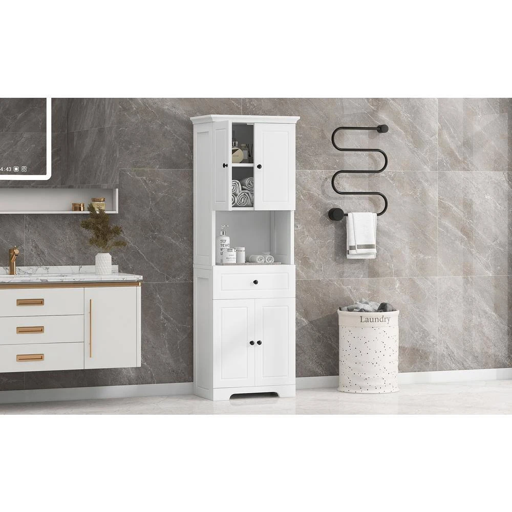 This exceptional storage cabinet is a masterpiece of functionality and aesthetics, constructed from robust high-quality MDF boards that have been meticulously painted to provide a sleek, smooth, and waterproof surface. The surface is not only resilient and durable but also exceptionally easy to clean, ensuring that your storage cabinet remains in pristine condition for years to come.Boasting ample storage options, this cabinet features double cabinets with doors, providing a secure and enclosed space for storing personal items or essentials. Additionally, the open storage space and adjustable shelves offer a flexible and customizable storage solution, allowing you to organize and categorize a wide range of items with ease. Whether you’re looking to keep your office clutter-free or your bathroom tidy, this cabinet’s versatile design makes it an ideal choice for any room in your home.Safety is a top priority with this cabinet, as it comes equipped with an anti-toppling device that can be securely attached to the wall to prevent accidental tipping. This added safety feature ensures that you and your loved ones, including curious children, remain protected from potential harm.