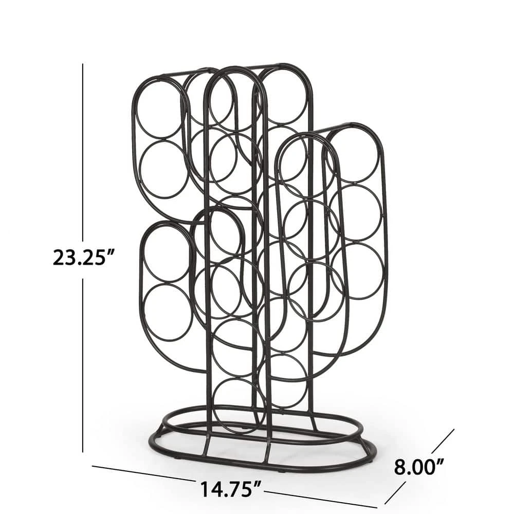 Showcase your wine collection with this unique cactus-shaped tabletop wine rack, blending playful style and practical function. Designed with a modern industrial aesthetic, its sleek iron frame features a whimsical cactus silhouette and 13 round bottle slots, offering both secure storage and a chic display for up to 13 wine bottles. The durable iron construction, finished with a matte coating, ensures long-lasting use while adding an understated, tropical charm to kitchens, dining areas, or living rooms. Measuring 14.75 in. W x 8.00 in. D x 23.25 in. H, this space-efficient rack requires no assembly-simply unpack and use to instantly elevate your home decor with a touch of minimalist sophistication.