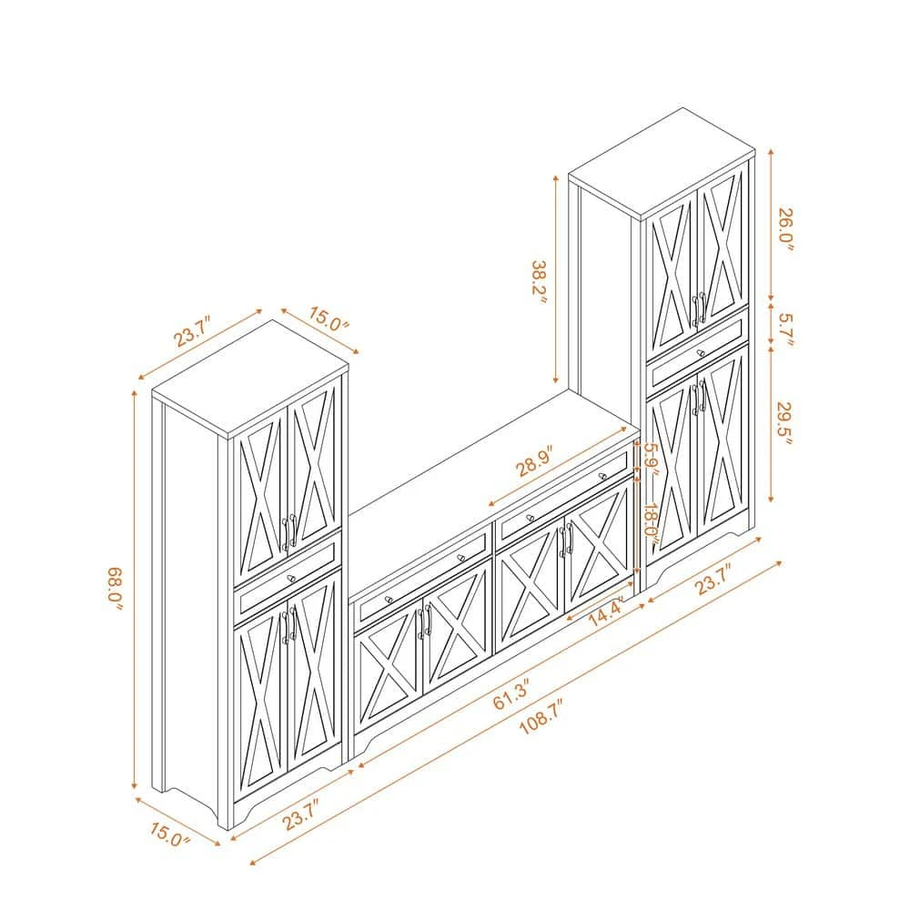 - Storage Capacity: Ample storage space is provided, including a 61-inch TV stand and two side cabinets, allowing for efficient organization and storage.