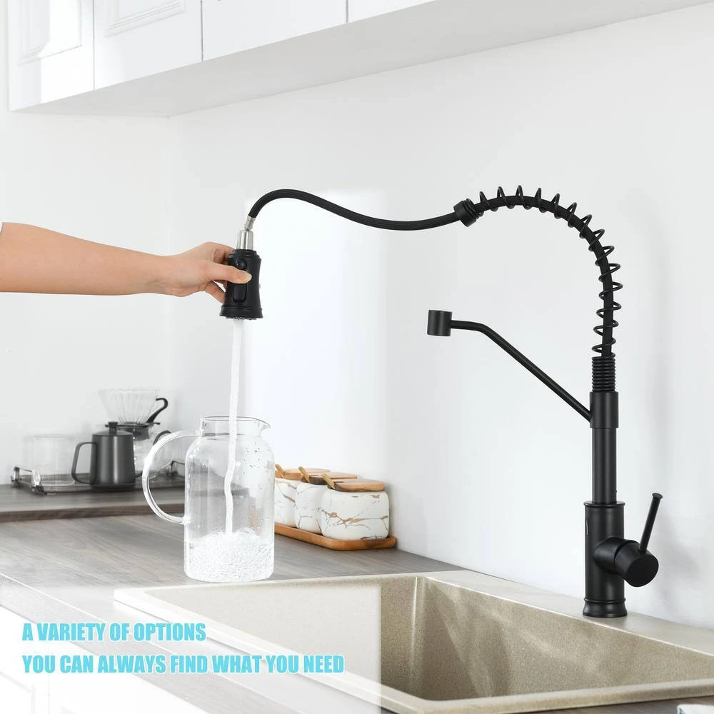 In order to enhance the enjoyment of life, we have introduced new motion-activated technology to our hands-free kitchen faucet with a sprayer. No need for hands’ touch; the water flows out through the sensing system and turns off automatically. The commercial pull-down design with a high-arc open coil spout fits most kitchen cabinets. The faucet features a 360° swivel sprayer, providing a wider water area and flexibility. The dual-function spray head switches between an aerated stream for filling pots and pitchers, and a powerful spray for rinsing dishes and washing away stubborn food residue. Purchase this item to enjoy its convenience in your kitchen.