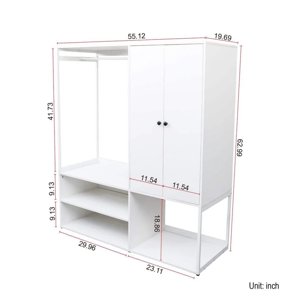 - Structural design: double-door design, equipped with hanging rods and storage racks inside, with both hanging and storage functions