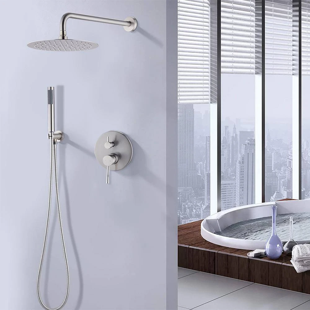 - 10 in. rain shower head and handheld shower head provide a full body spray even in low water pressure areas