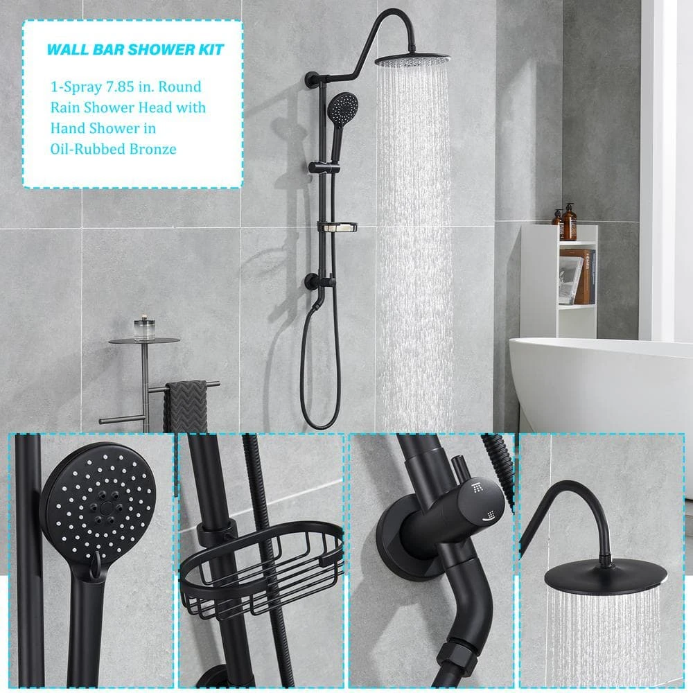 This shower combo, featuring a rain shower head, hand shower, adjustable slide bar and soap dish, is made of stainless steel with an oil-rubbed bronze finish. The diverter is located at the bottom of the slide bar, making it suitable for any height. Highlights include a 6 in. handheld shower handle, a 4 in. handheld shower and a 36 in. hose. The rain shower head and handheld shower can be used separately or together for a multitude of spray combinations.