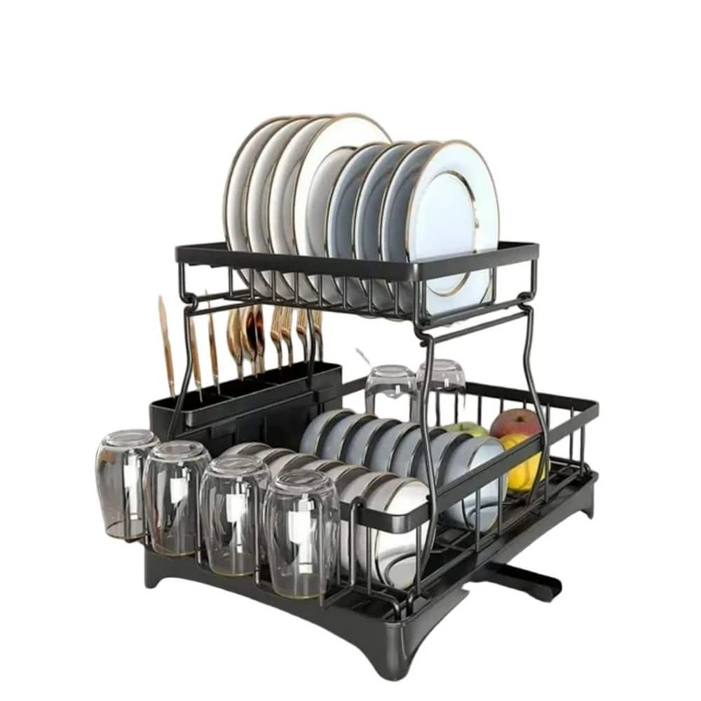 Say goodbye to a cluttered countertop! This removable double-layer drain rack will completely transform your kitchen. It has a large capacity that can easily store all kinds of dishes, cups, and even more tableware, and with easy installation without tools, you can quickly have a neat and organized space. Made of high-quality rust-proof metal, it is sturdy and durable, and is the perfect solution for efficient use of small kitchens!