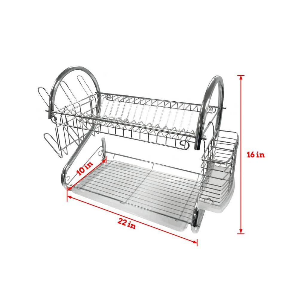 Are you still worried about the pile of dishes. This Better Chef 16 in. double-layer chrome dish rack will completely change your kitchen. Not only can it easily accommodate up to 18 dishes, but it also comes with a side-mounted cup rack and cutlery tube to make your countertops tidy in an instant. The chrome metal structure is beautiful and durable, and it comes with scratch-resistant feet and a drain tray to ensure that your kitchen is both efficient and beautiful.