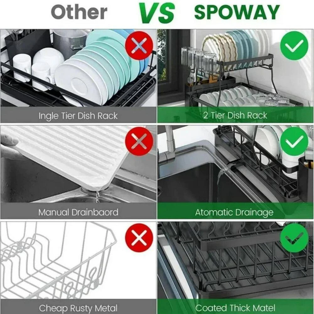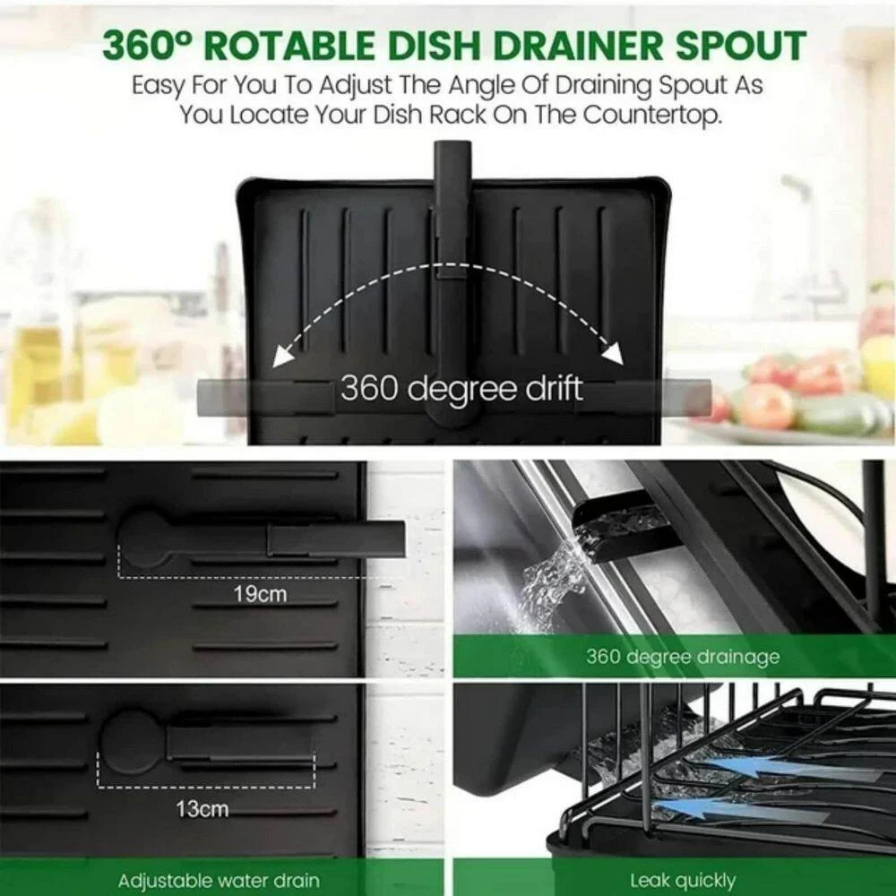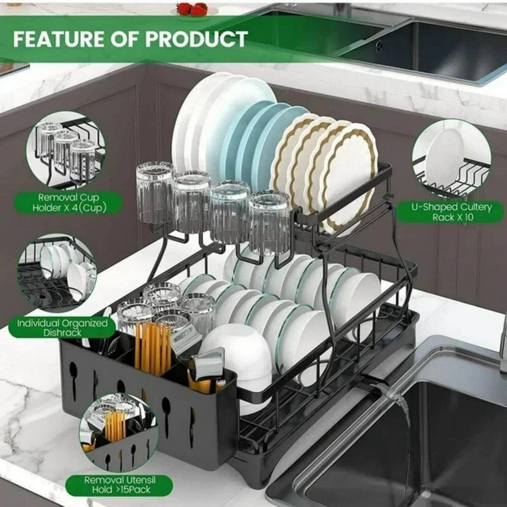 - Detachable 2-tier design large rack with drainboard for efficient countertop organization
