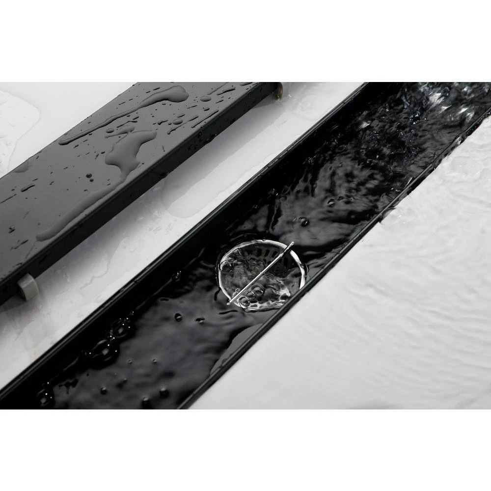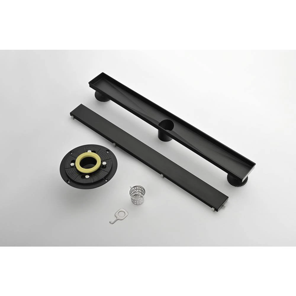 The recessed design of this drain pipe brings a clean and modern look to your space. Adjustable leveling feet support the trough, while the removable grille and hair filter make it easy to clean. This linear shower drain is designed for easy installation and fits the American drain base system, making it suitable for drainage in various areas such as bathrooms, kitchens, garages, swimming pools, basements and more.