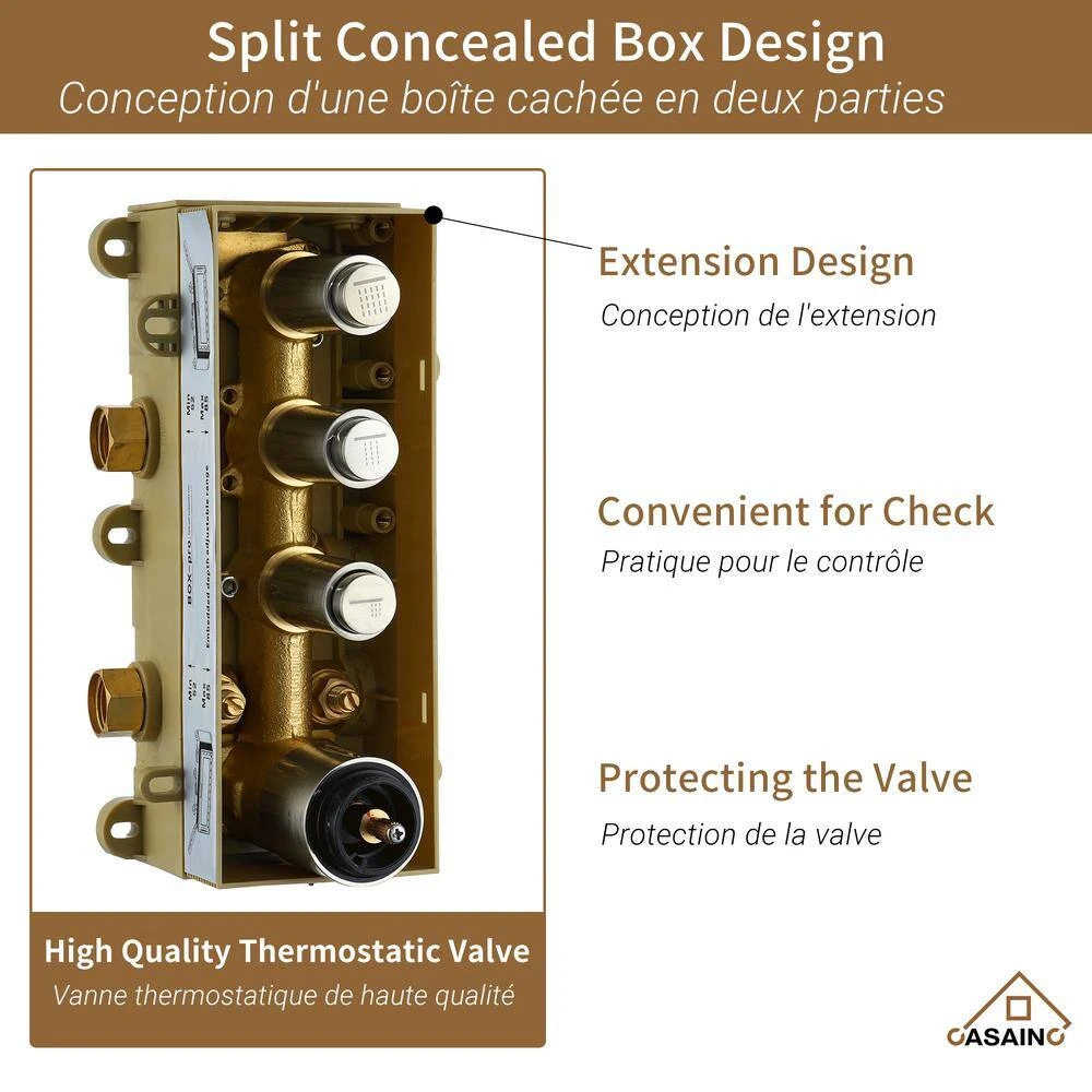 Get ready for ultimate relaxation. Getting a relax bathing with CASAINC 12 in. rainfall shower head. Moreover, Pampers you with thermostatic shower system technology that keeps water at a comfortable temperature each time you shower regardless of changes in water pressure. The best choice for your family Don’t hesitate, get yours today and start enjoying CASAINC quality at home.