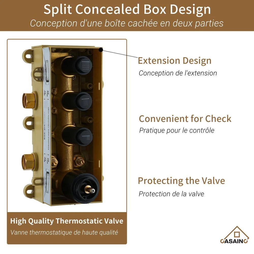 - Split concealed box design: install with the plastic main body first time and check whether the water output and water pressure are operating properly you can replace the main body after the test to avoid damaging the valve during the first installation