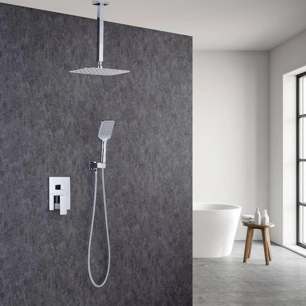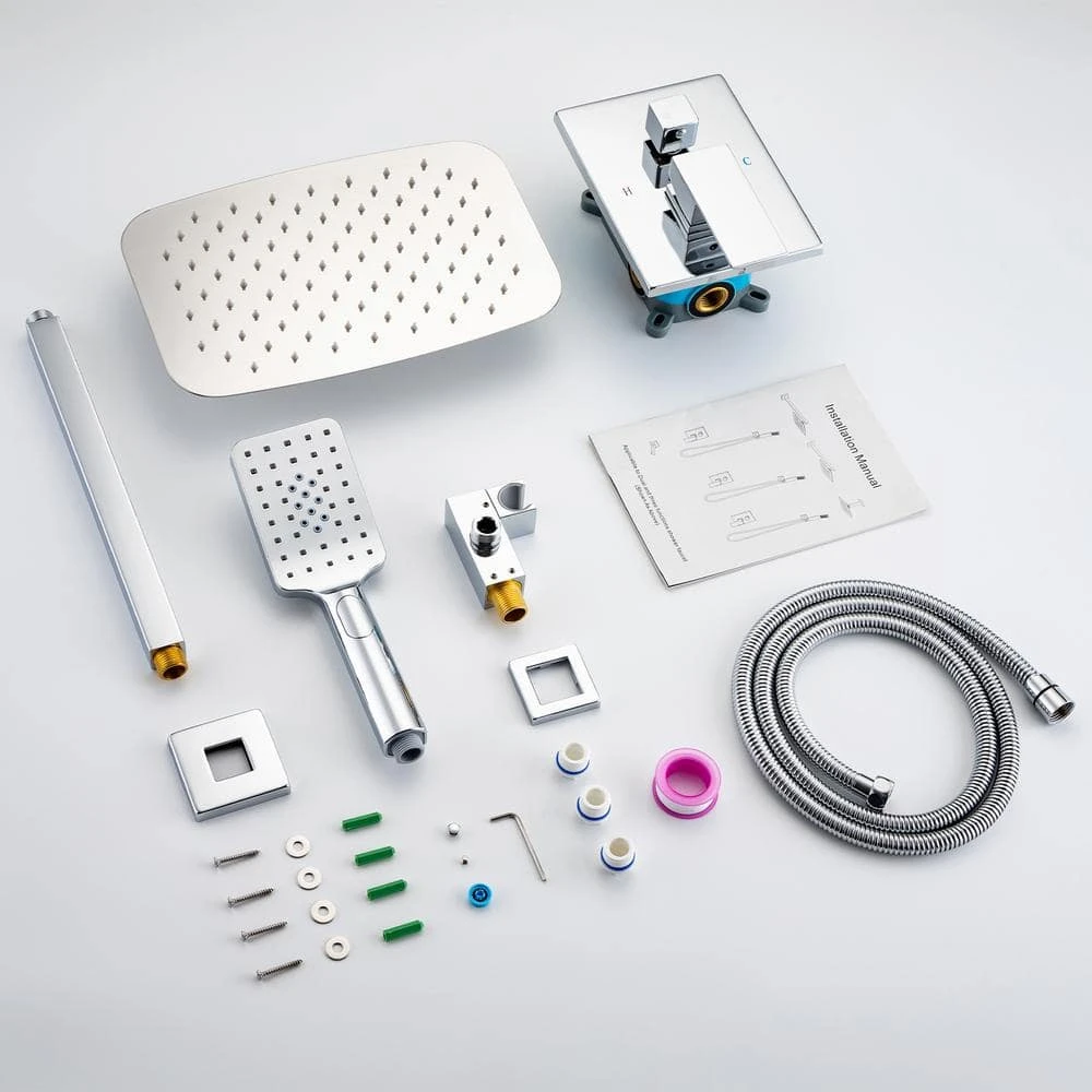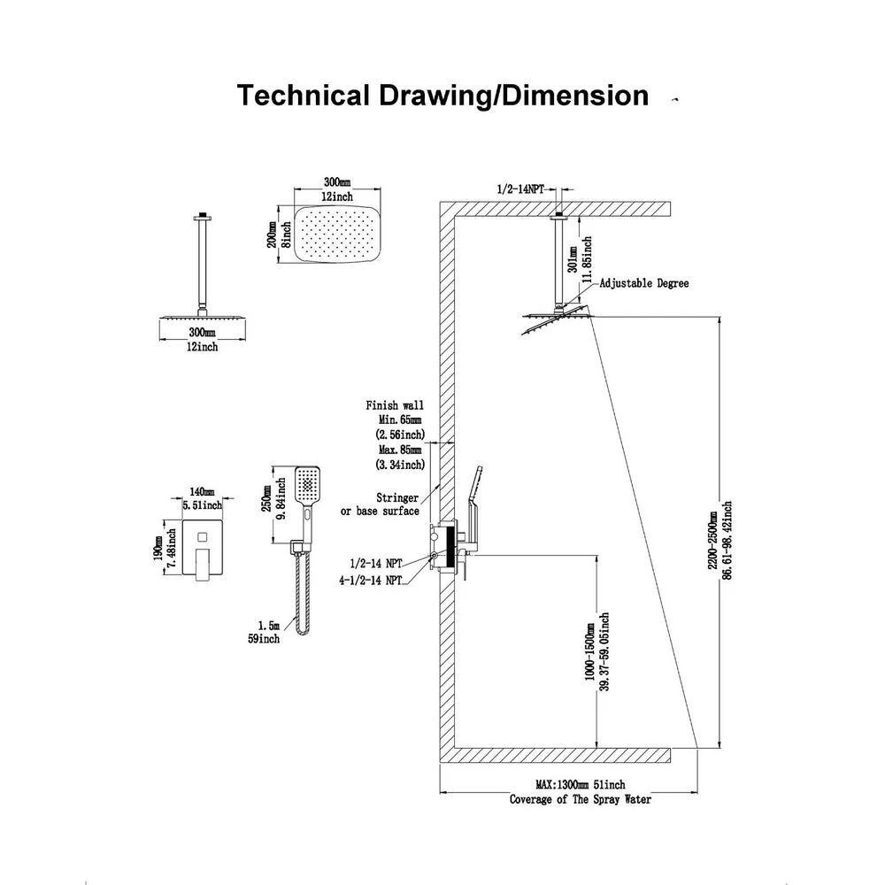 Deluxe Rainwater Mixer Shower Combo Kit Wall with Coarse Inlet Valve Concealed Mount Brass Shower Bracket Bracket and Solid Brass Shower Mixer Valve (Includes Trim and Coarse Inlet Valve). Brass L-Shaped Hand Shower Head with 70.8 in. (1.8 m) 304 Stainless Steel Shower Hose for easy access. Male 1/2 in. NPT entry, US pipe connection, you don’t need to worry about whether the connector size fits your pipe thread.