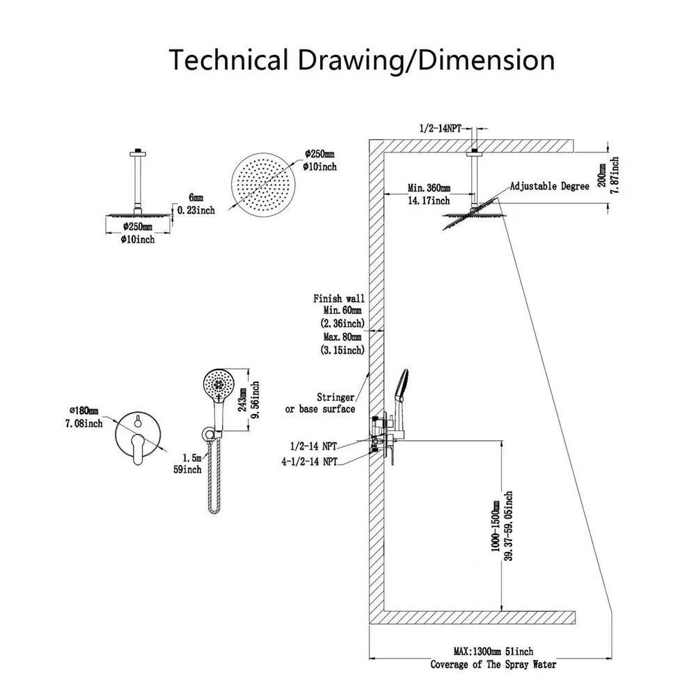 - Faucet body is made of solid brass to ensure high quality and longevity, the 12 in. oversized overhead shower is made of SUS 304 stainless steel