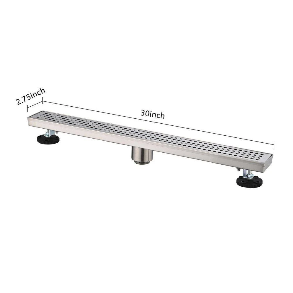 This linear drain is suitable for multiple scenarios including bathrooms, kitchens, pools, balconies, garages, basements and toilets, and is especially ideal for bathroom drainage-it’s easy to install and maintain. Its drain cover adopts a grid design: this not only enhances the texture underfoot, but also effectively increases water flow and reduces water pooling, solving the problem of stagnant water in daily use. The drain cover can be easily removed and separated, and daily cleaning only requires a hook, making maintenance hassle-free; additionally, the drain is made of high-quality stainless steel, which is rust-resistant, corrosion-resistant and durable, ensuring long-term reliable use.