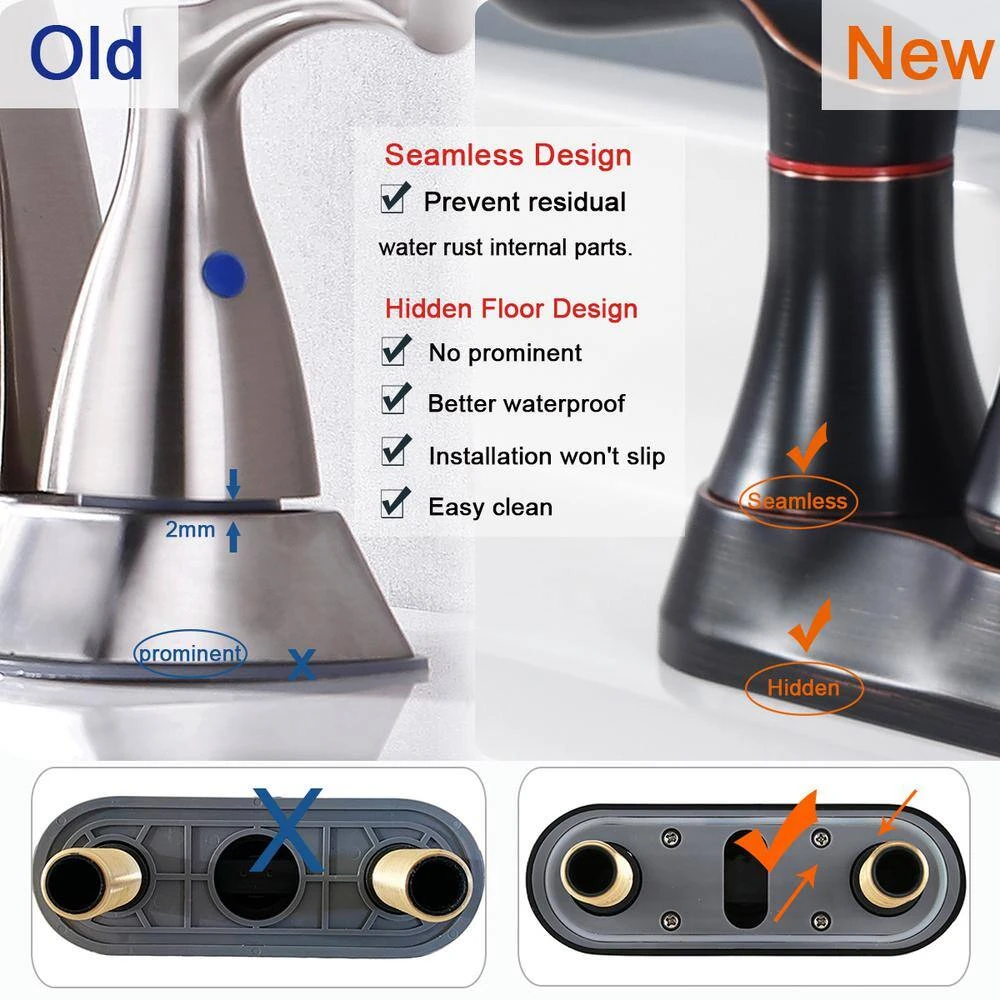 Double-Handle 3 Holes Bathroom Faucet with Pop-Up Drain in Oil Rubbed Bronze easy to wipe away mineral build-up, for a long-lasting powerful flow. Bathroom faucet will bring your decor together seamlessly for ultimate flexibility and simplicity. This faucet exudes a timeless sophistication that will never go out of style.