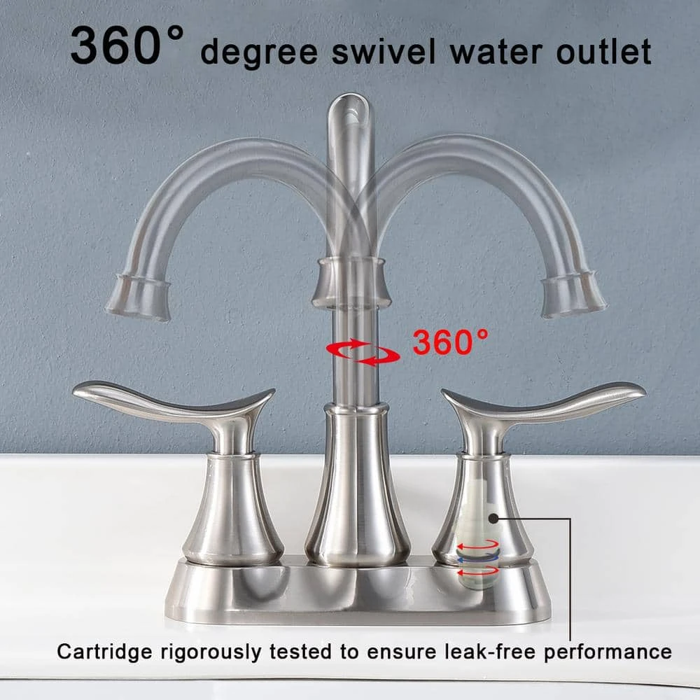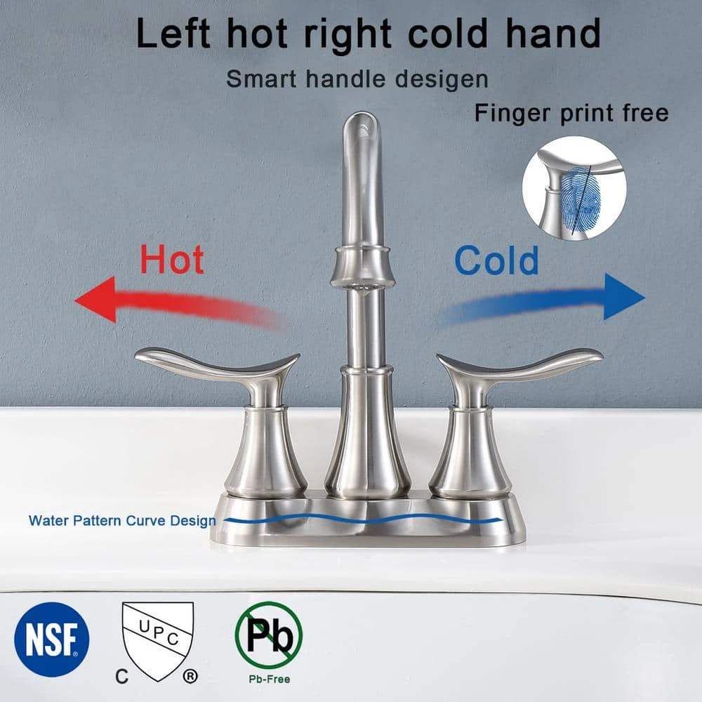 - 2 handle lever bathroom faucet design for precise control in both volume and water temperature, the handle torque can reach up to 18MM, which greatly extends the handle life, the current industry standard is 9 mm, the high-quality ceramic and copper cartridge has passed 500,002 cycles of water tightness test to ensure that the brushed nickel bathroom faucet is stable