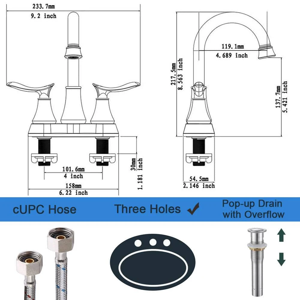 - Lavatory faucet design can help you install by following the instruction with 30-minutes, without a plumber and save the fee, the box contains all you need including pop up drain and braided stainless steel water inlet hose 9/16 in. female compression thread x 1/2 in. female compression thread, x 2-pieces 2-pair, unique fast connect construction, the hot and cold water can be mixed by quick-install pipe without wrench, through technique to prevent pipe burst
