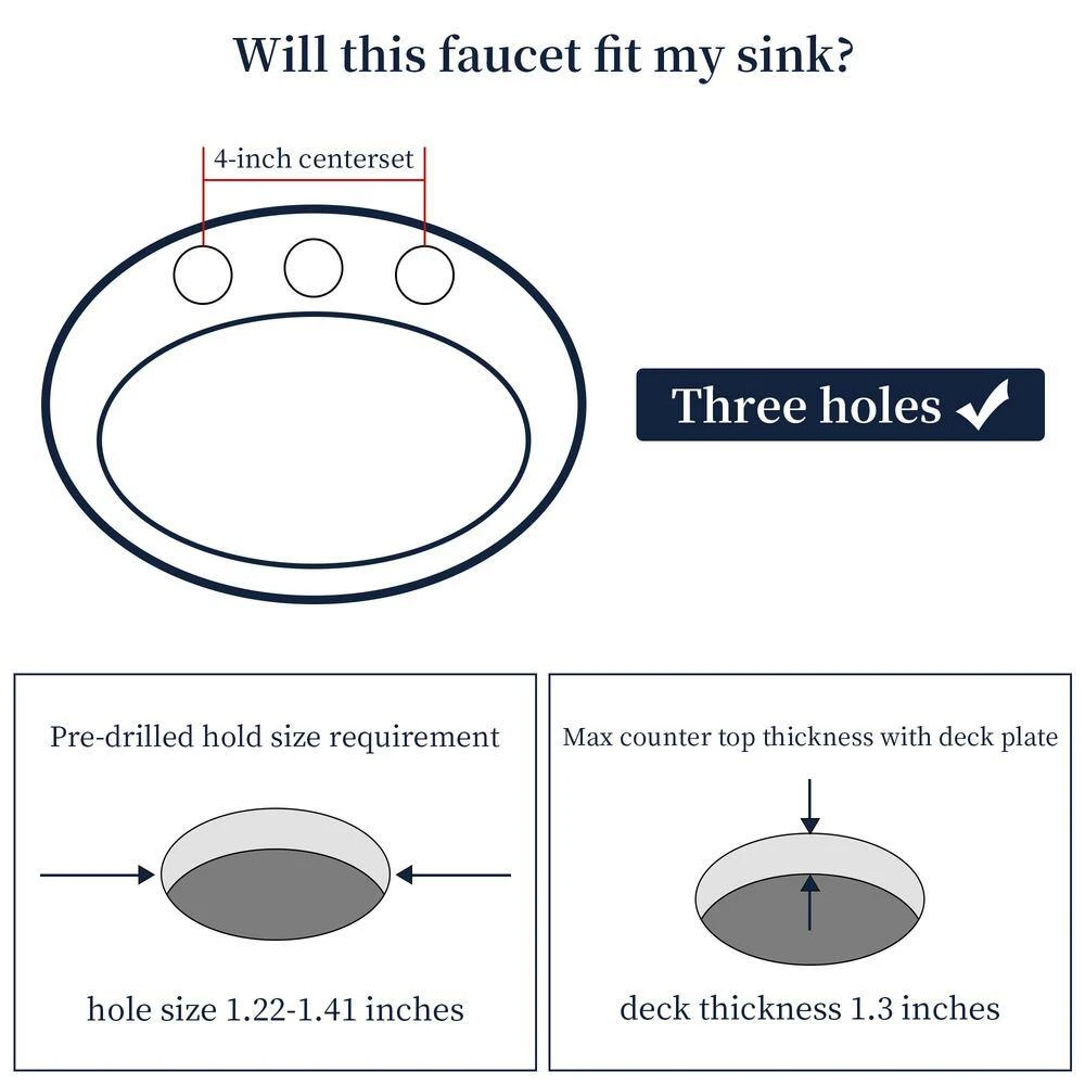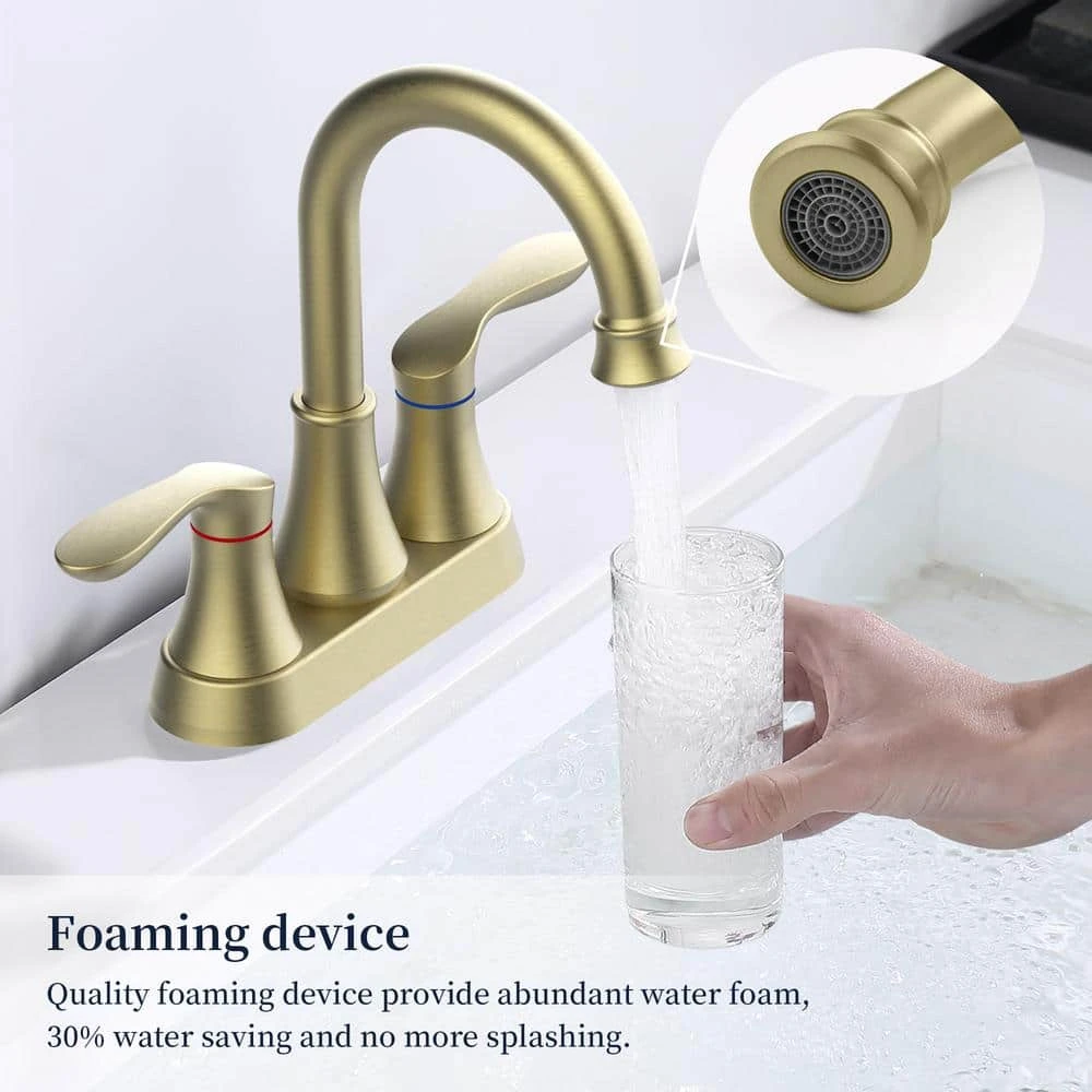 - ABS aerator of 3-hole mount 5 in. center set bathroom sink faucet imported strengthens the foaming effect of the dense, the water flow is dense and soft without splashing, improve water efficient, detachable aerator, you can clear hard water blockage at any time, suitable for rent house, new condo, single-apartment, motor home, travel trailer and family use