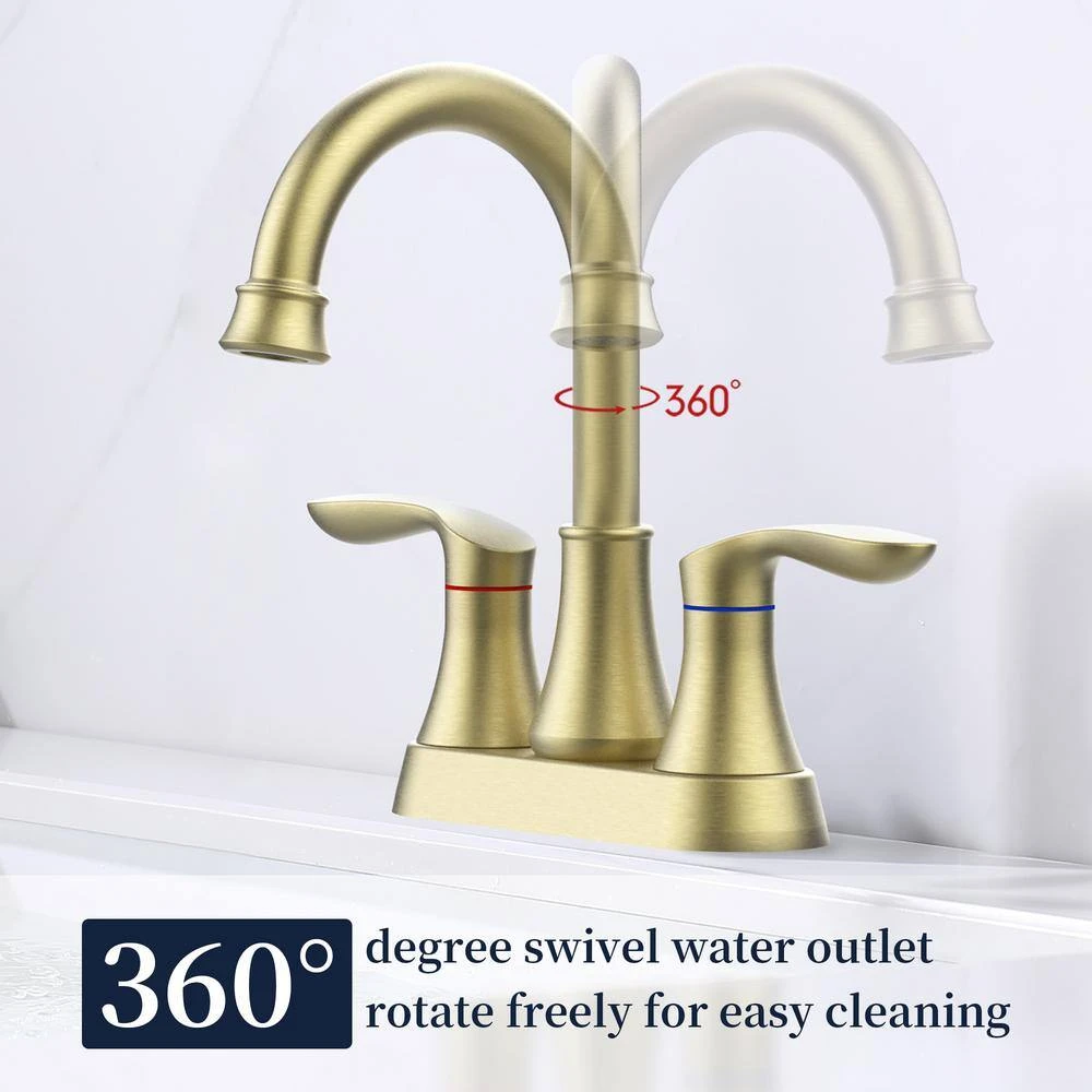 Brass construction gives the 4 in. Center set 2-Handle Bathroom Faucet of high-end quality, which provides durability. The beautiful high arc spout matches the flat deck plate and lever handle which offers a beautiful balance of curves and facets that exudes timeless sophistication and add delicate detail to any bath. From its durable, long-lasting construction to the contemporary and decor-complementing design. Suitable for rent house, new condo, single-apartment, motor home, travel trailer and family use.