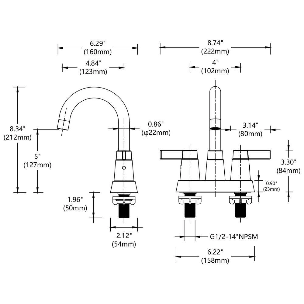 2-Handle 4 in. bathroom faucet vanity faucets in a retro color that can add a nostalgic atmosphere to your home. This bathroom faucet features a deck-plate mounting design and is installed in 3-holes with 4 in. on-center spacing. Made of lead-free all-metal materials, very healthy and environmentally friendly. Elegant dual handle for easy operation and precise control of temperature and water flow.