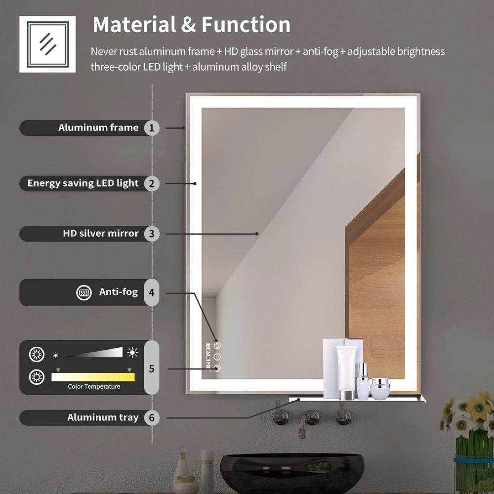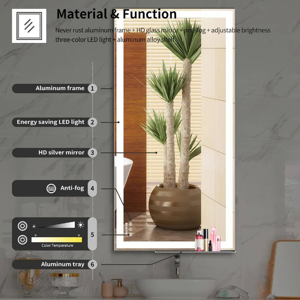 - LED mirror has a defogging function, which can prevent the mirror from fogging in the shower