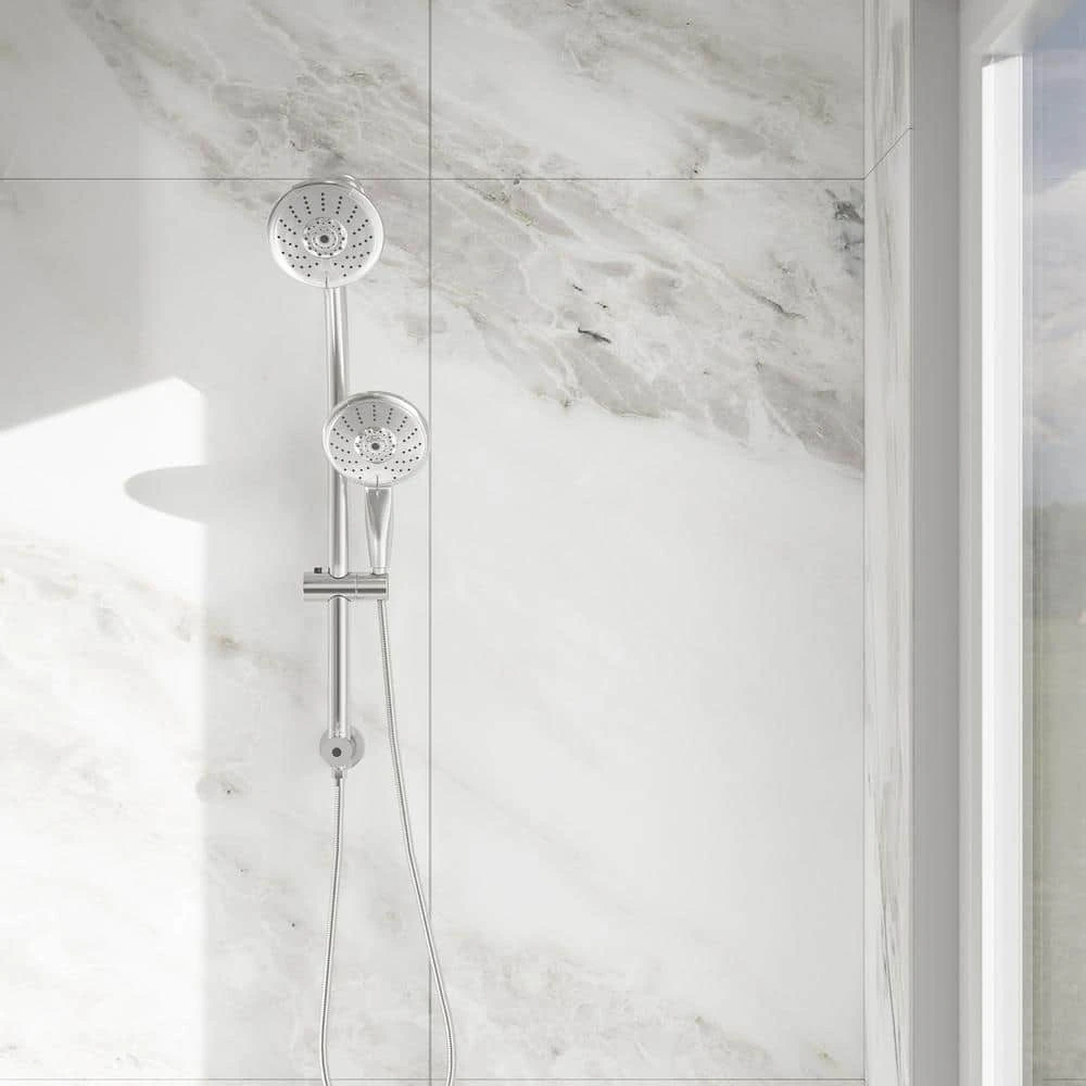 - Complete set: includes shower head, handheld shower, slide bar, hose, shower arm, and installation instructions (on/off valve and trim kit not included)
