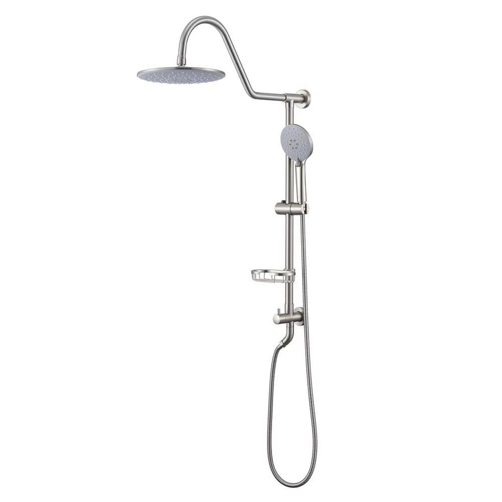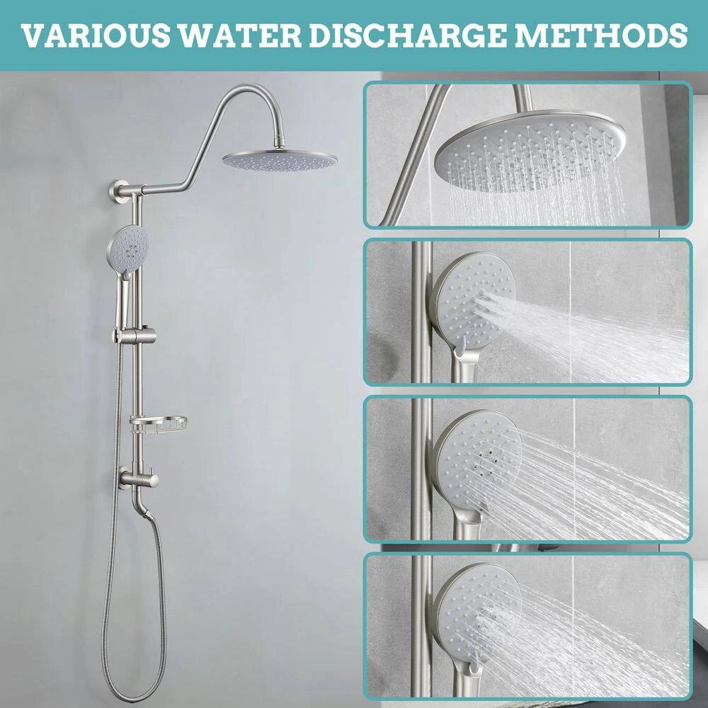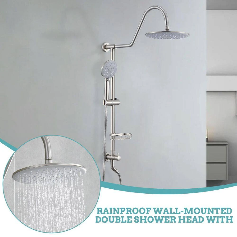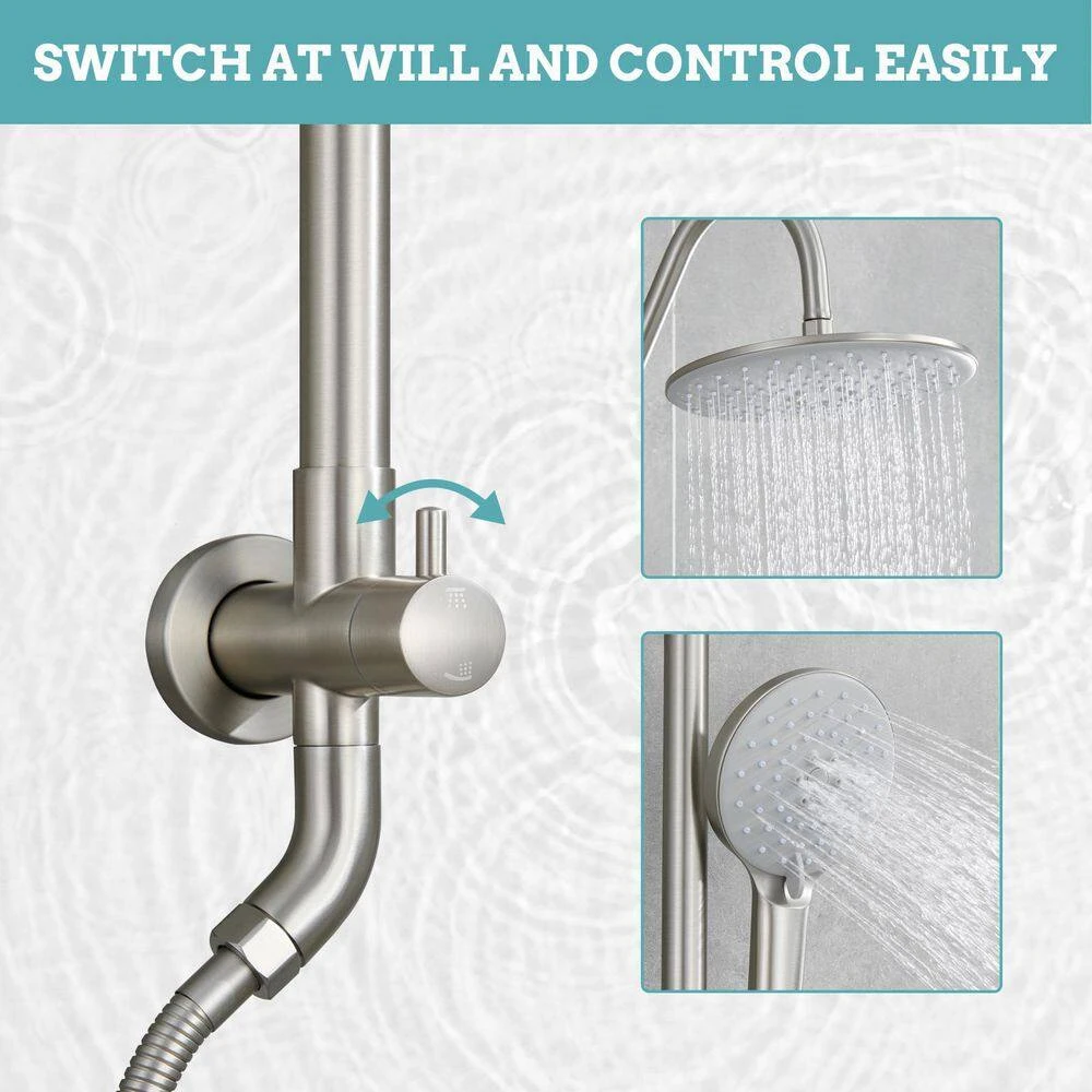This combination shower offers a luxurious sensory experience, allowing you to indulge in the rain shower or hand shower separately or together for comprehensive coverage. The handheld shower provides 5-settings, ensuring optimal water pressure and excellent coverage. Highlights: Features a rotatable rain showerhead for versatile spray angles. Dial provides unlimited options for spray pressure and coverage, ensuring seamless switching between modes without interruptions. Finish prevents fingerprints and water stains, maintaining a clean bathroom appearance. Includes kink-free metal hoses for extended coverage and enhanced flexibility.