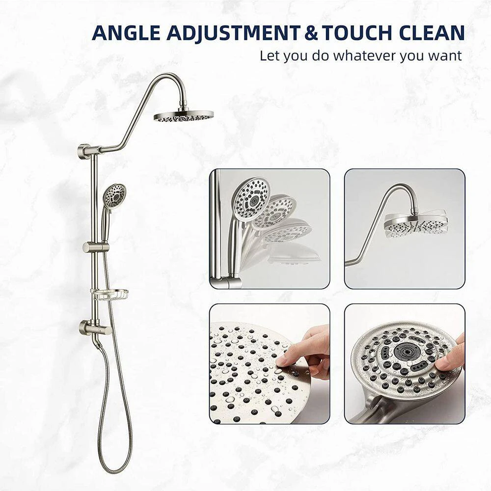 This hand shower offers an exceptional bathing experience with its array of features. It comes with five versatile settings, including full-body spray, massage spray, soft spray, high-pressure jet spray, and a pause function, allowing you to customize your shower according to your preference. The set includes an all-surface finish, a diverter, and a shower arm, and the silicone spray holes on the shower heads make it incredibly easy to remove limescale buildup with just a touch of your finger. Crafted with stainless steel and a plating surface, the handheld shower head is highly resistant to oxidation, corrosion, and rust, ensuring long – lasting durability. Both of the two shower heads are angle – adjustable, enabling you to enjoy a multi – angle rain shower experience for maximum relaxation. Installation is a breeze; there’s no need to hire a plumber, saving you money, and it can effortlessly retrofit your existing shower setup without the need for a full remodel.