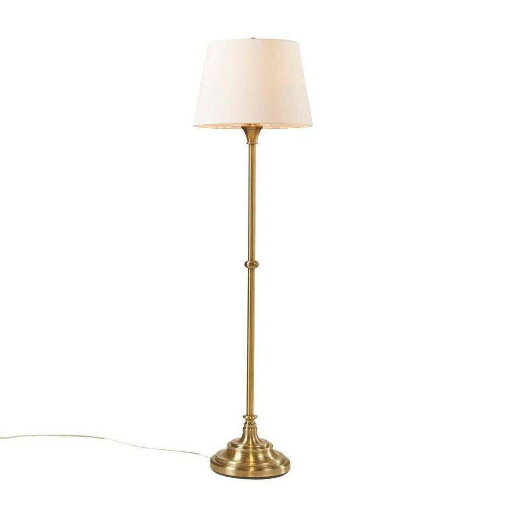 Add classic charm to your home with the Athena Floor Lamp from the Martha Stewart Bedford collection. Featuring an antique brass finish and a classic off-white shade, this lamp blends seamlessly with any decor. A rotary switch on the base makes operation simple and convenient, and the included 9W LED bulb provides warm, bright illumination.