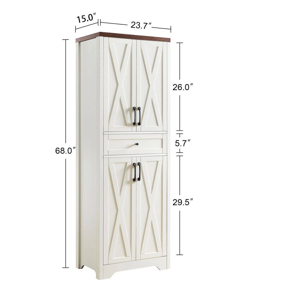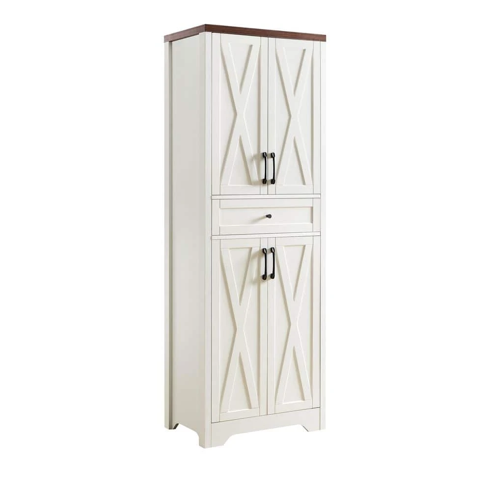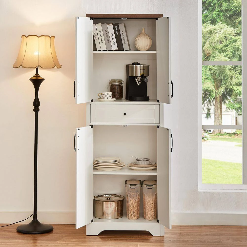 This tall pantry cabinet brings an understated luxury atmosphere to your living room, featuring smooth lines and a pure color that blends seamlessly with various decor styles. It offers ample storage options with 1 drawer and 4 doors, giving you plenty of space to organize daily items neatly.The cabinet makes reasonable use of its internal space, allowing you to store and arrange things according to your needs-helping you create an exquisite living style that reflects your personal taste.To ensure long-term stability during use, the cabinet’s main body is made of durable particle board, providing reliable sturdiness for daily storage needs.