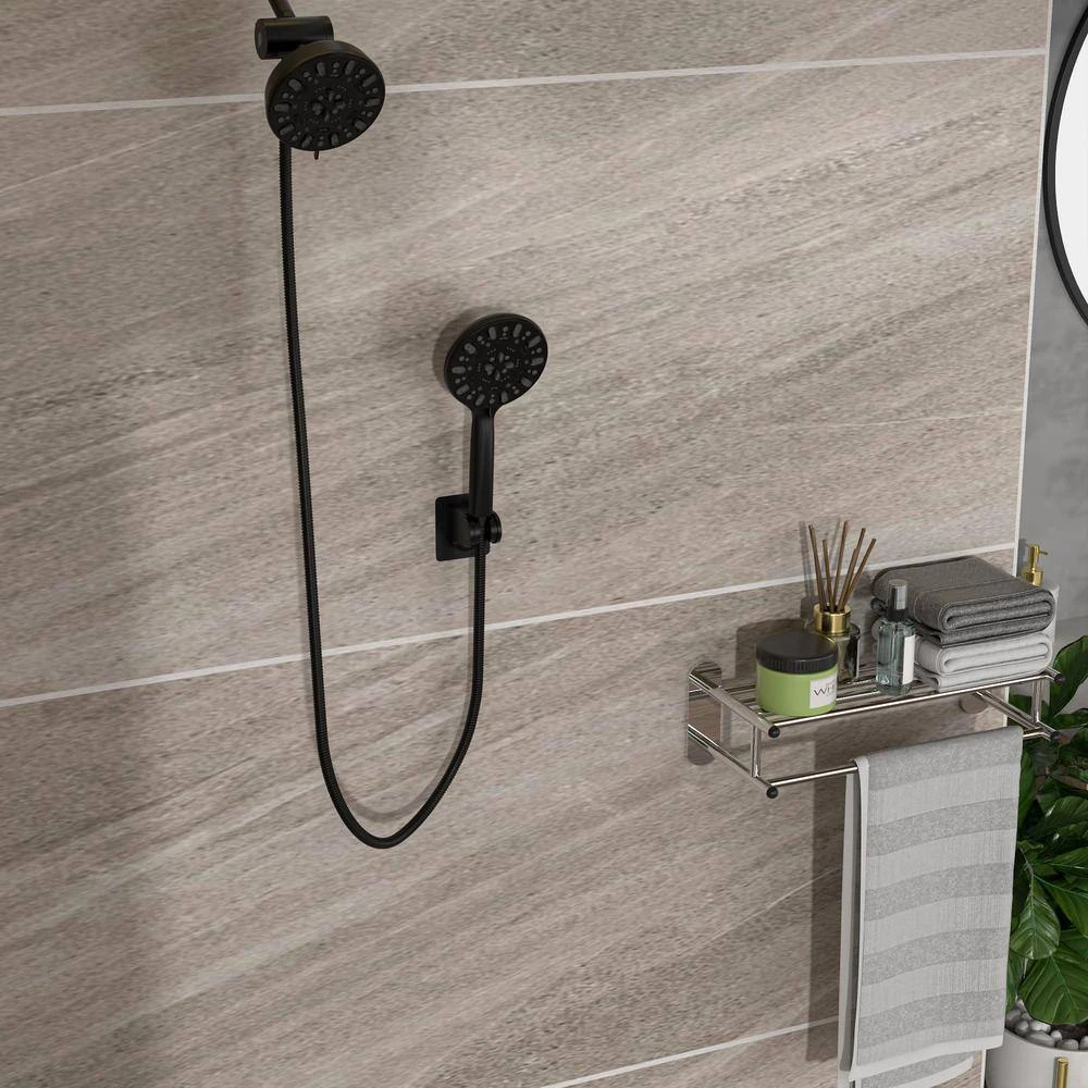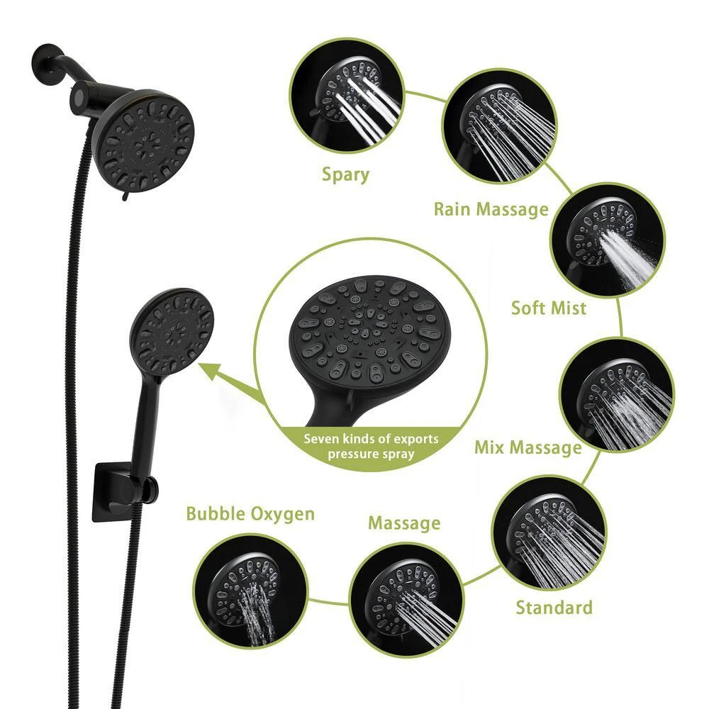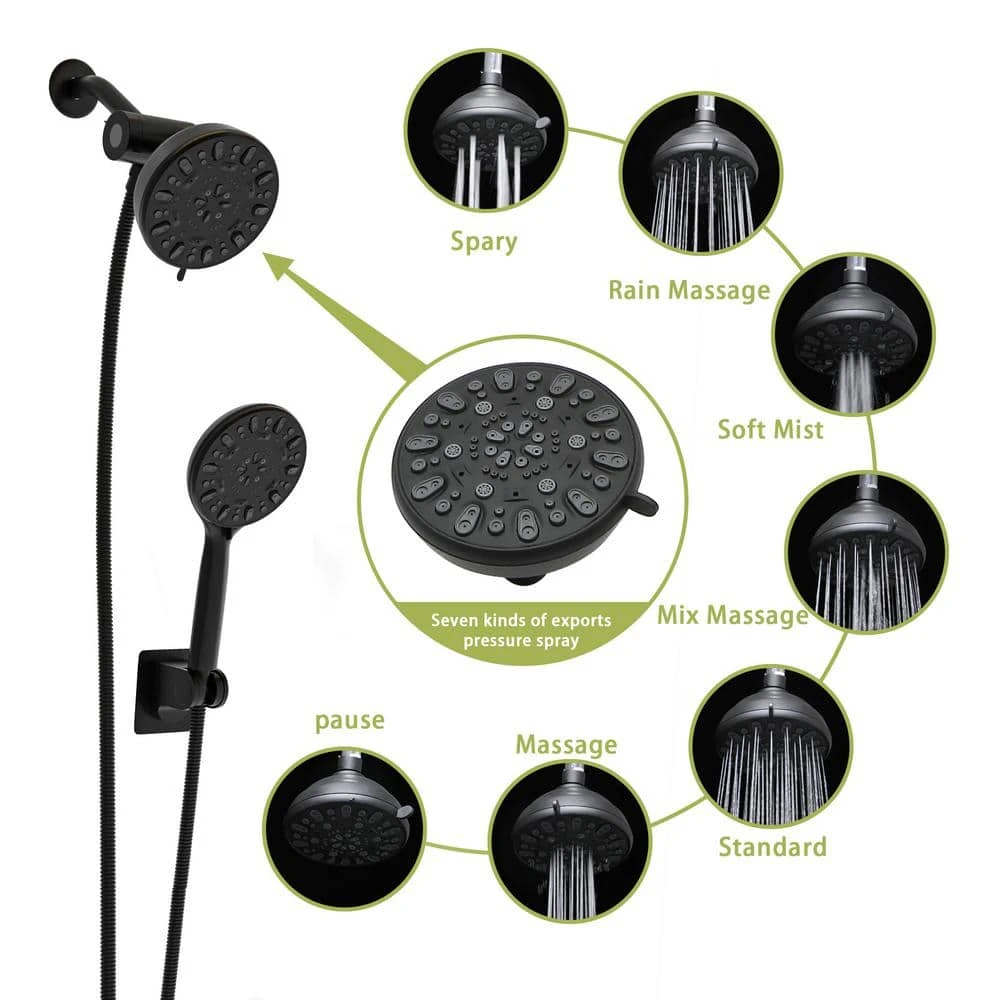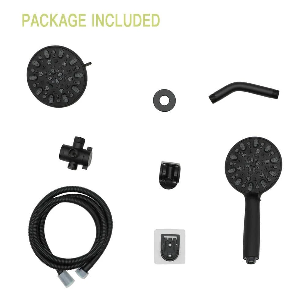 This shower system boasts seven settings including rain, massage, and spray modes tailored to individual preferences, offering a spa-like experience. It features a 59 in. durable stainless steel hose for extended reach and flexibility, a 4.7 in. easy-to-clean silicone outlet sprinkler head, and an adjustable shower holder to customize the water angle perfectly. The package includes the shower head, adjustable hand-held shower, angle-adjustable holder, stainless steel hose, enamel-covered shower arm, gaskets, plumber’s tape, and an installation manual for a comprehensive setup.