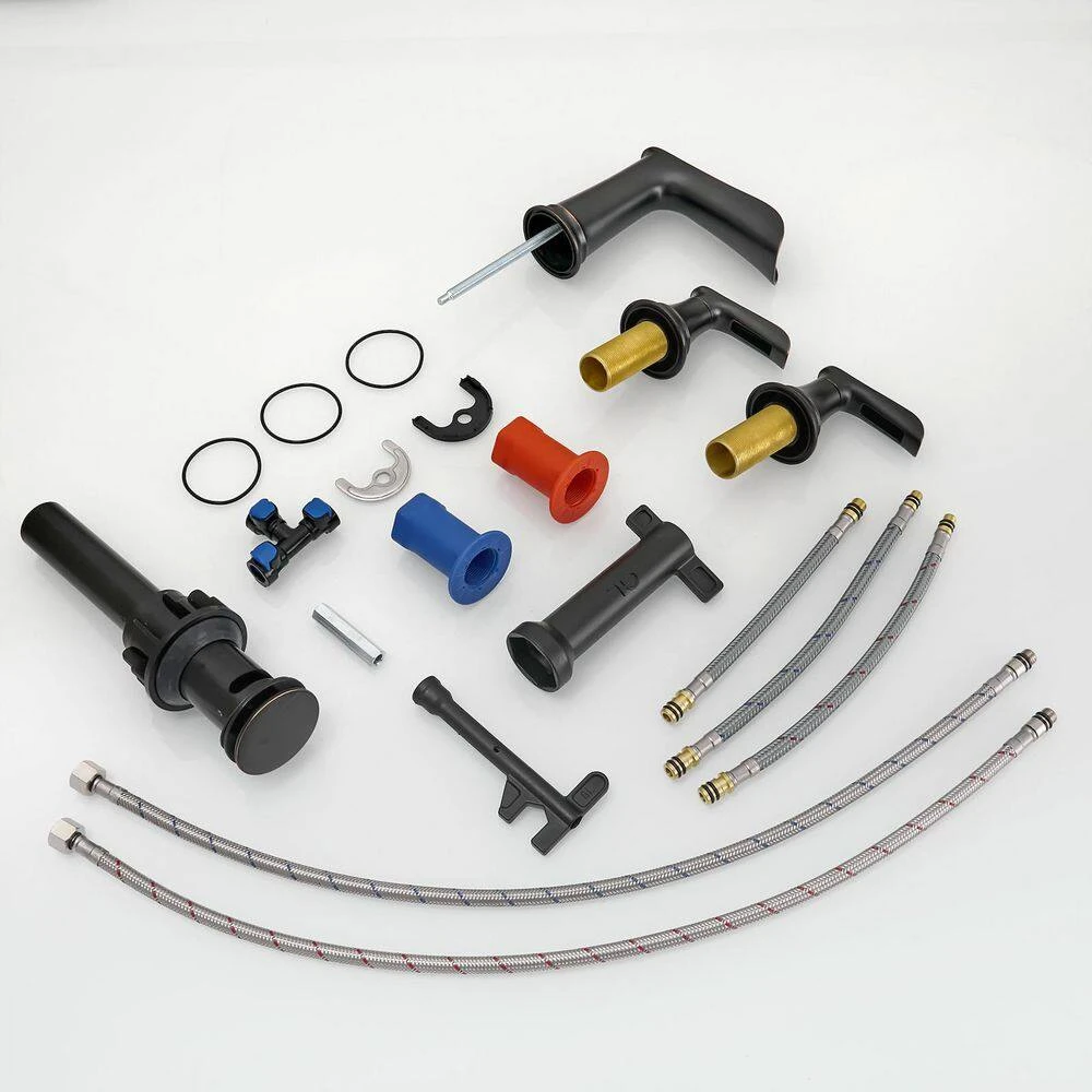 This exceptional bathroom sink faucet offers a comprehensive set of Product Features. It is a 2 – Handle, 8 – inch widespread design, perfectly suited for 3 – hole installations, and crafted in an elegant Oil Rubbed Bronze (ORB) finish. As a basin mixer tap with a hose, it combines functionality and convenience. The ORB finish not only gives it a sophisticated look but also resists corrosion and scratches, and it comes updated with a match – color universal overflow pop – up drain stopper for added practicality. Constructed with a solid brass body and featuring a ceramic cartridge, this faucet ensures drip – free performance, promising long – lasting durability. The 2 – handle metal lever design allows for precise control over both water volume and temperature, enhancing the user experience. Moreover, installation is a breeze with its easy DIY setup. Requiring 3 mounting holes, it supports widespread installation on countertops with centers ranging from 8 to 16 inches, making it a versatile choice for various bathroom setups.