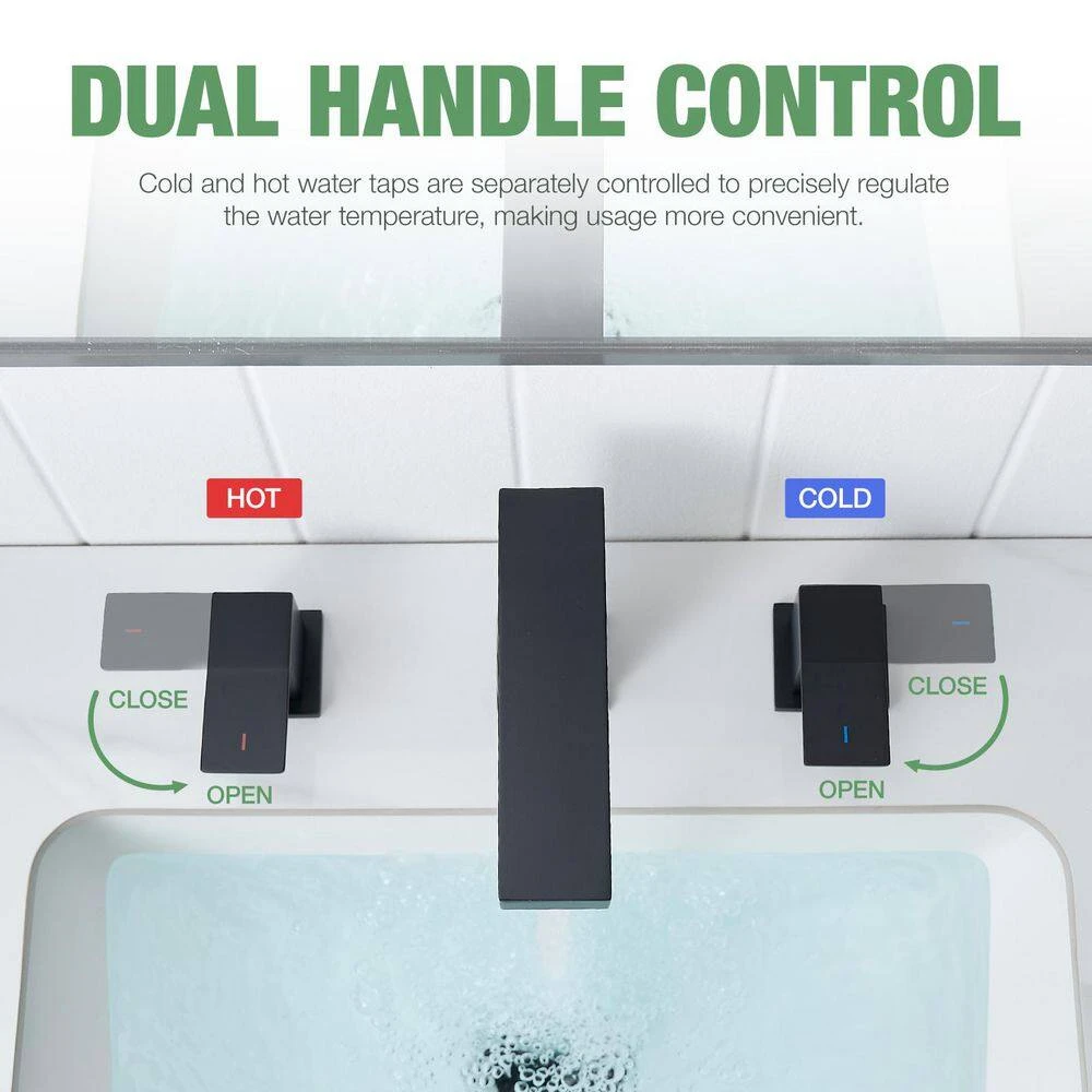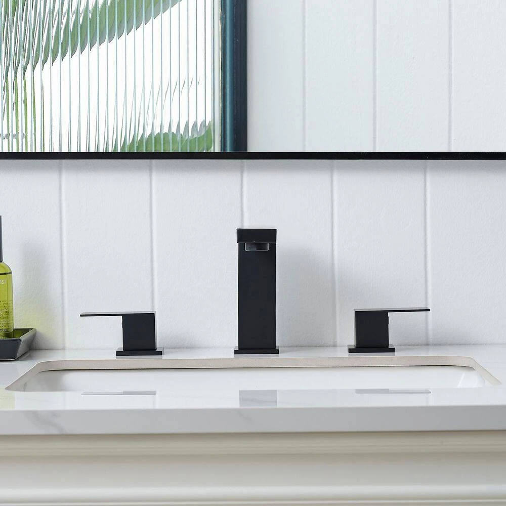 This 2-handle widespread bathroom sink faucet is thoughtfully designed with a modern aesthetic that seamlessly complements any contemporary bathroom decor. The faucet features a 360° rotating spout, offering enhanced versatility by allowing you to direct water flow in any direction, making it easier to access every corner of the sink. This design is particularly useful for tasks such as rinsing, filling containers, or cleaning.The dual-handle setup provides a sophisticated touch, allowing for precise and effortless control over both water volume and temperature. The 3-piece design ensures that adjustments can be made with accuracy, giving you a tailored experience every time you use it. This faucet not only adds a sleek, modern look to your bathroom but also delivers functional efficiency, making it an ideal choice for those who value both style and practicality in their fixtures.