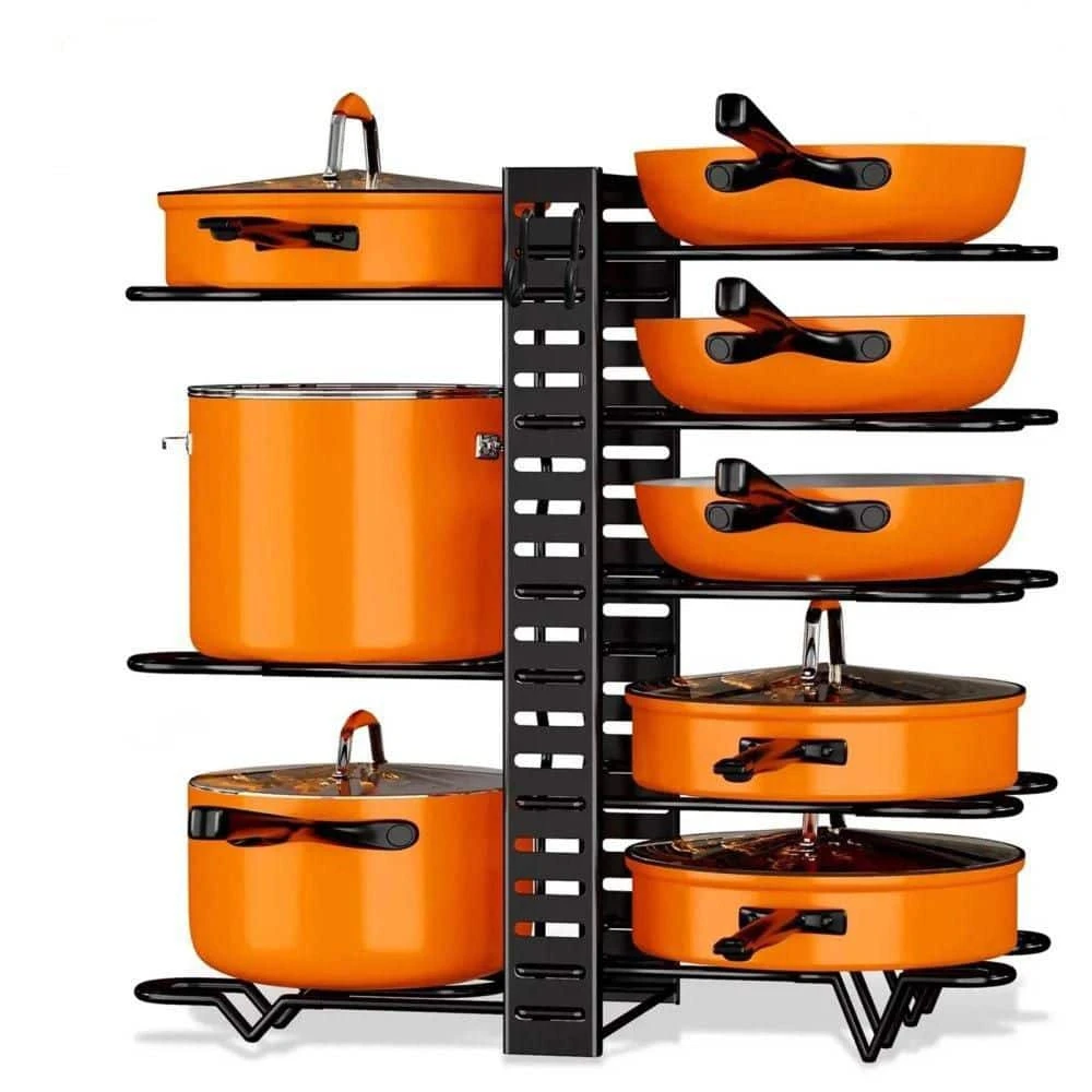 - 8-Tier Adjustable Design Customize each tier’s height to fit pots, pans, lids, and cutting boards of varying sizes, ensuring versatile storage.