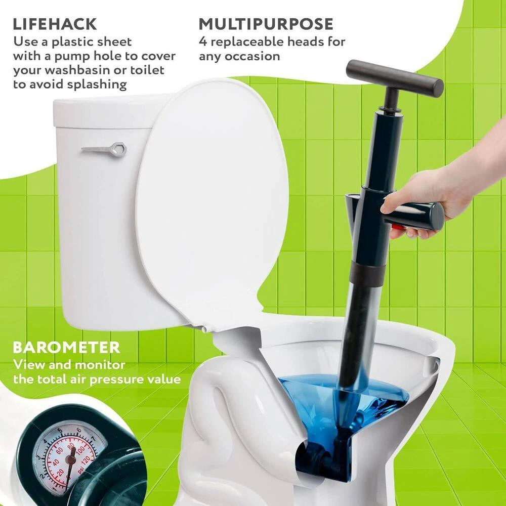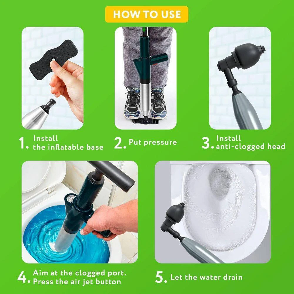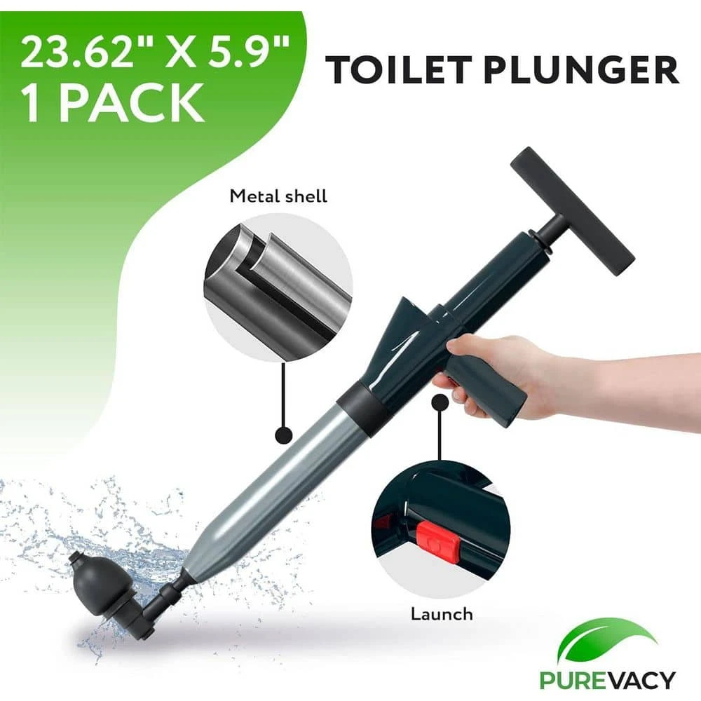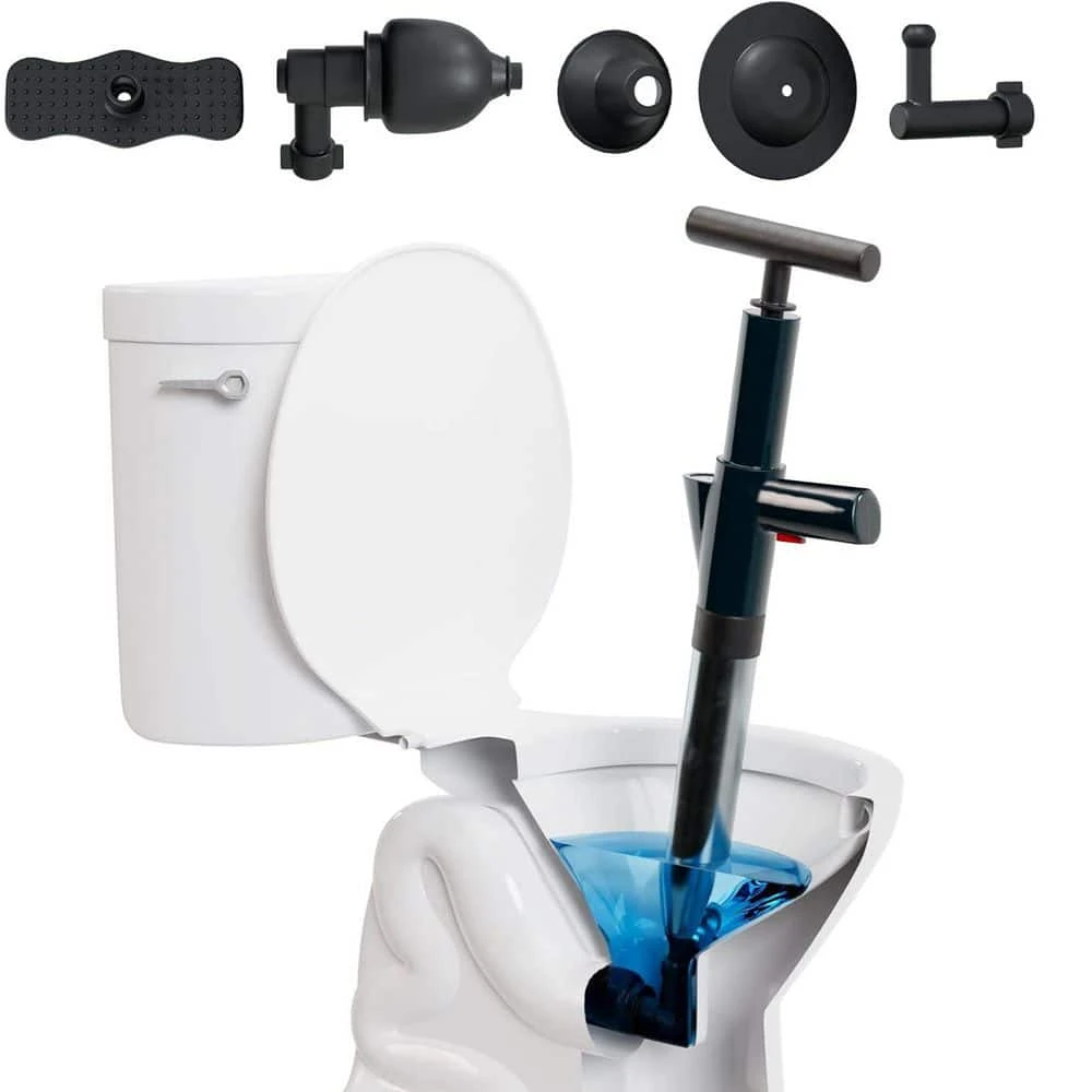 This powerful dark green air plunger is expertly designed to tackle clogs in both toilets and showers, leveraging high-pressure air blasting technology to quickly and effectively dislodge even stubborn blockages-from hair and debris in shower drains to waste buildup in toilets. Crafted with a durable blend of robust ABS plastic and corrosion-resistant stainless steel, it boasts a sturdy construction that stands up to frequent use, ensuring long-term reliability. Equipped with 4 replaceable heads, it offers versatile compatibility with different drain sizes and types, adapting seamlessly to various bathroom setups. As a practical air drain blaster plunger, it combines strong performance with user-friendly functionality, making drain unclogging simpler and more efficient for everyday household needs.