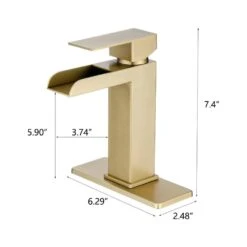 Single Handle Wall Mounted Bathroom Faucet With Deck Plate & Overflow Pop Up Drain In Brushed Gold